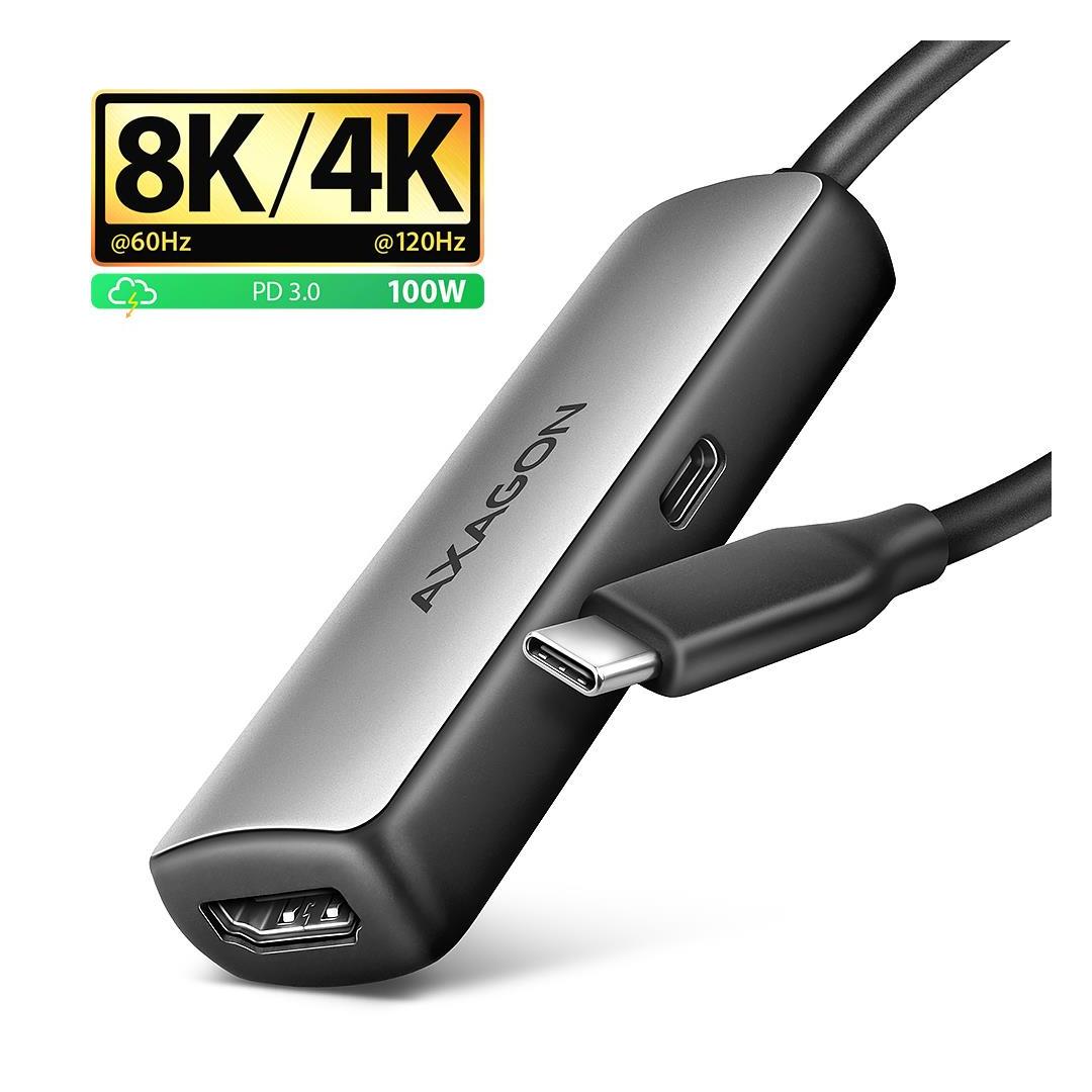 USB-C-> HDMI active adapter AXAGON RVC-HI8KPD for connecting an HDMI monitor /TV/projector to a notebook, tablet or mobile phone using USB-C connector. This adapter allows you to easily use your existing HDMI cable to connect devices such as an Apple MacBook Air or Pro.