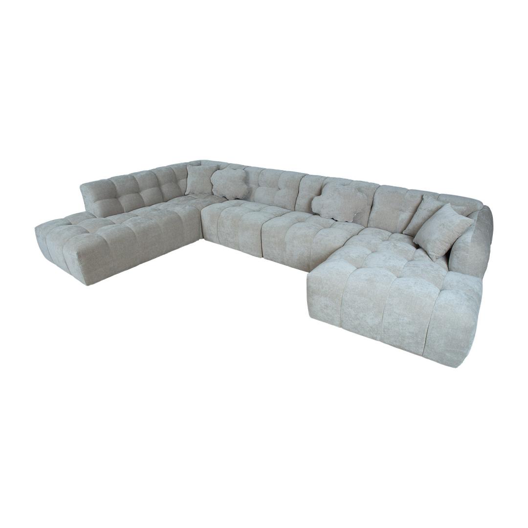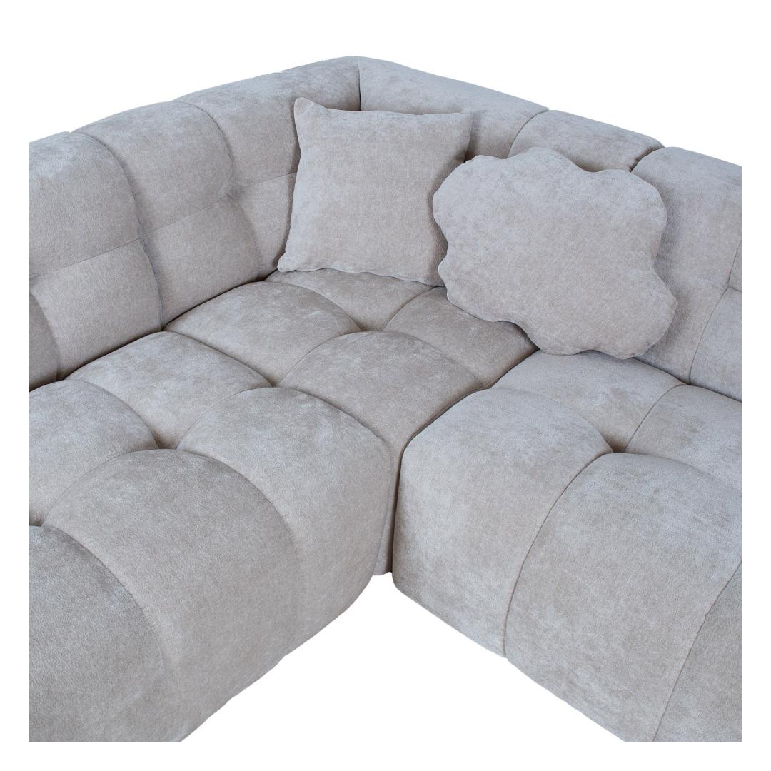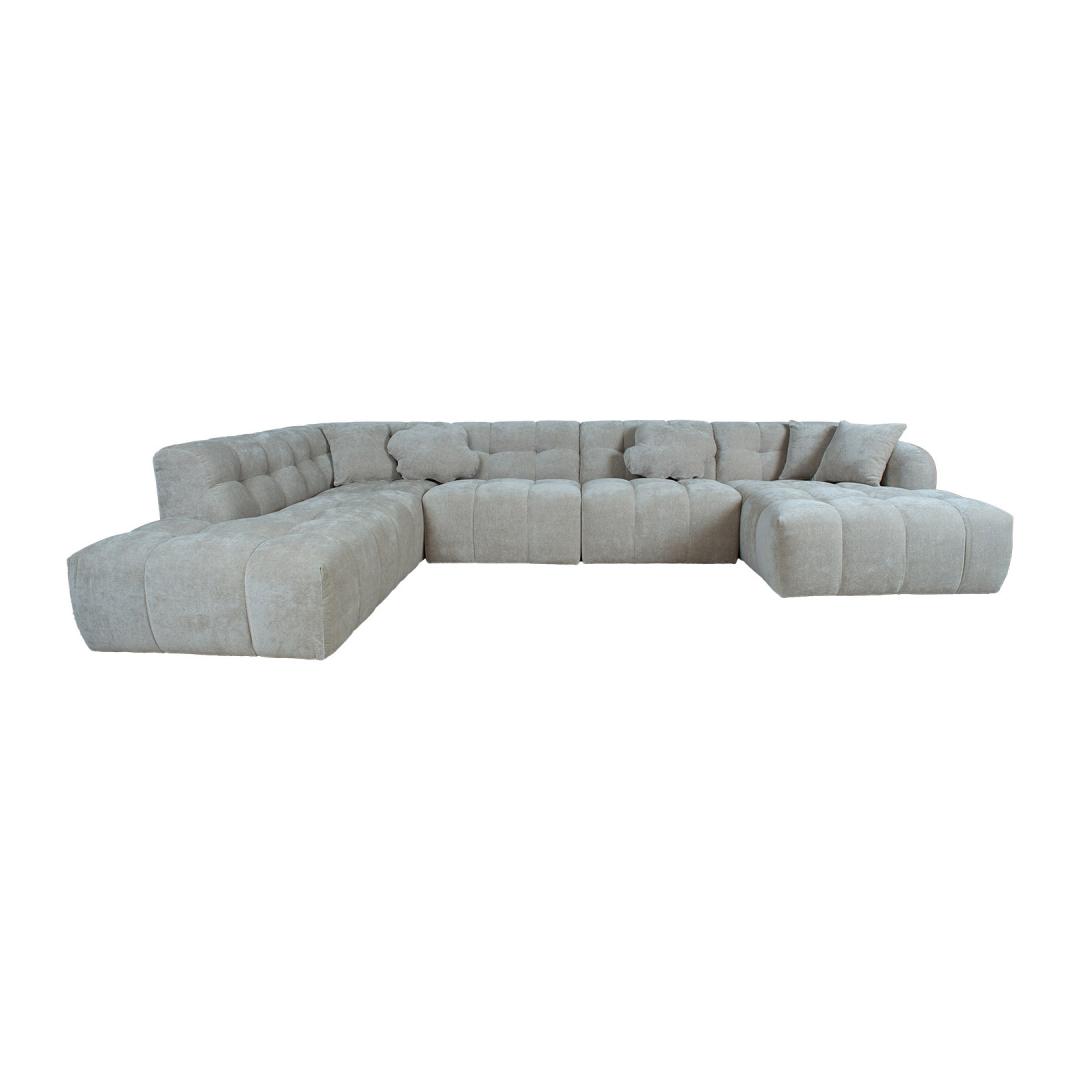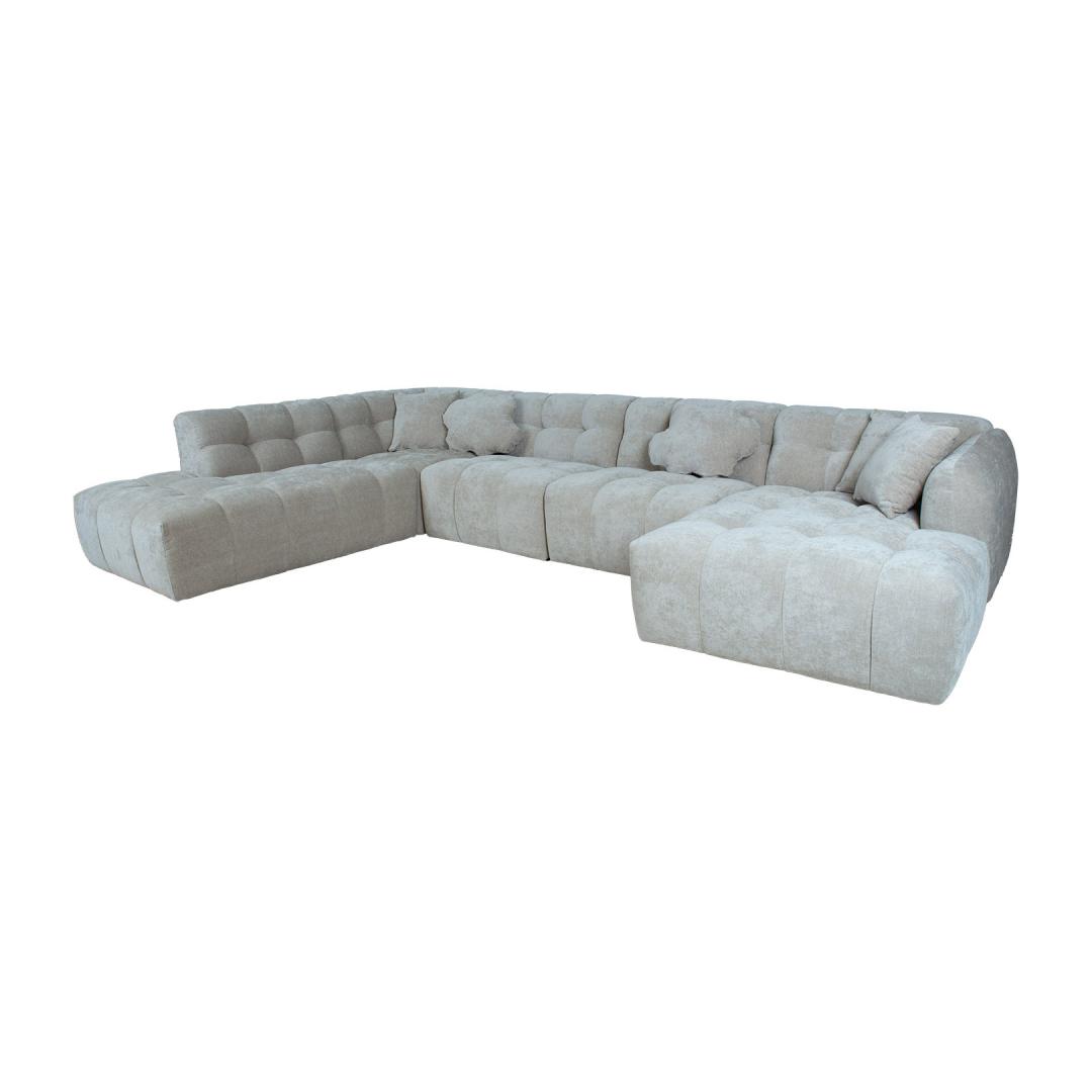 Komplekti kuulub 5 diivanipatja: 43x43cm /3tk, pilvekujuline padi 60x40cm/2tk. Nurgadiivan FORTE U-kujuline, pikem nurk vasakul, beez.
