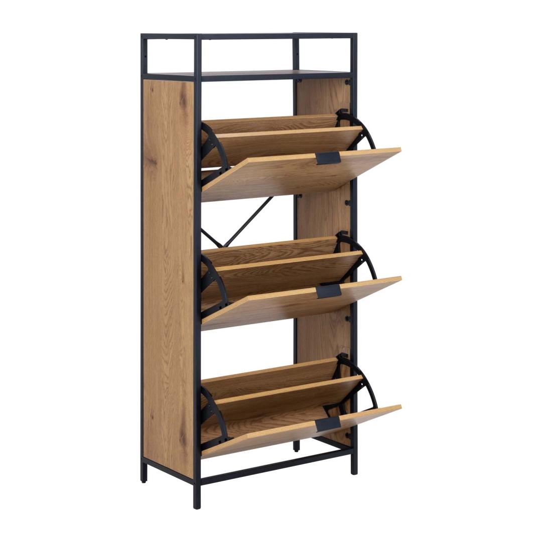 Jalanõudekapp lisab esikusse põrandapinda. Jalanõusid saab organiseeritult hoida kolmes sahtlis, millest igaüks on jaotatud kaheks. Tamme välimus koos musta terasraamiga on kaasaegne kombinatsioon, mis sobib igasse koju. Mõõdud 56x30xH129cm. Jalanõudekapp lisab esikusse põrandapinda. Jalanõusid saab organiseeritult hoida kolmes sahtlis, millest igaüks on jaotatud kaheks. Tamme välimus koos musta terasraamiga on kaasaegne kombinatsioon, mis sobib igasse koju. Mõõdud 56x30xH129cm.