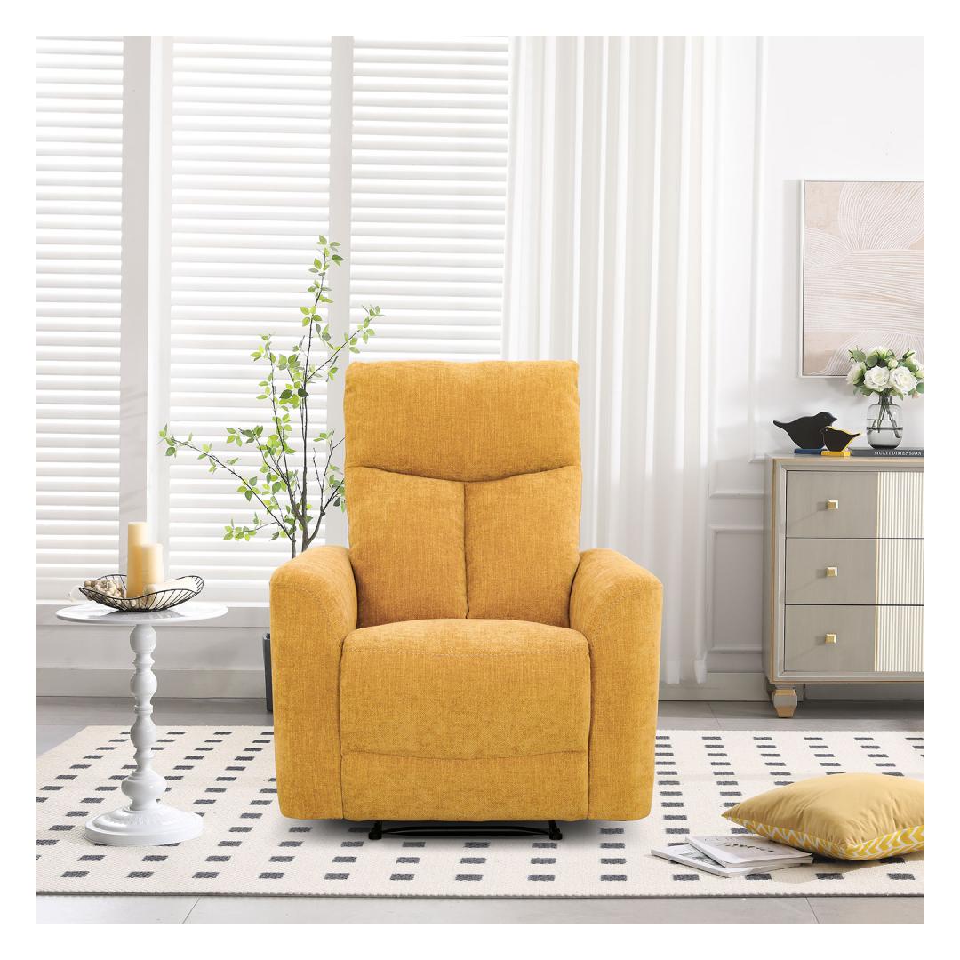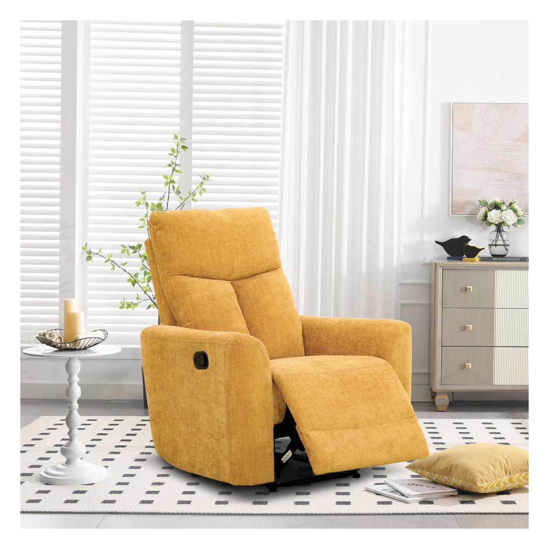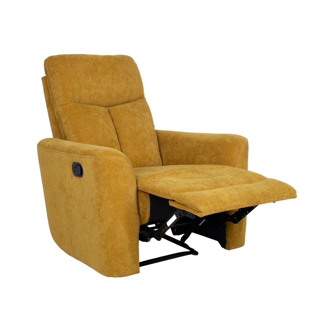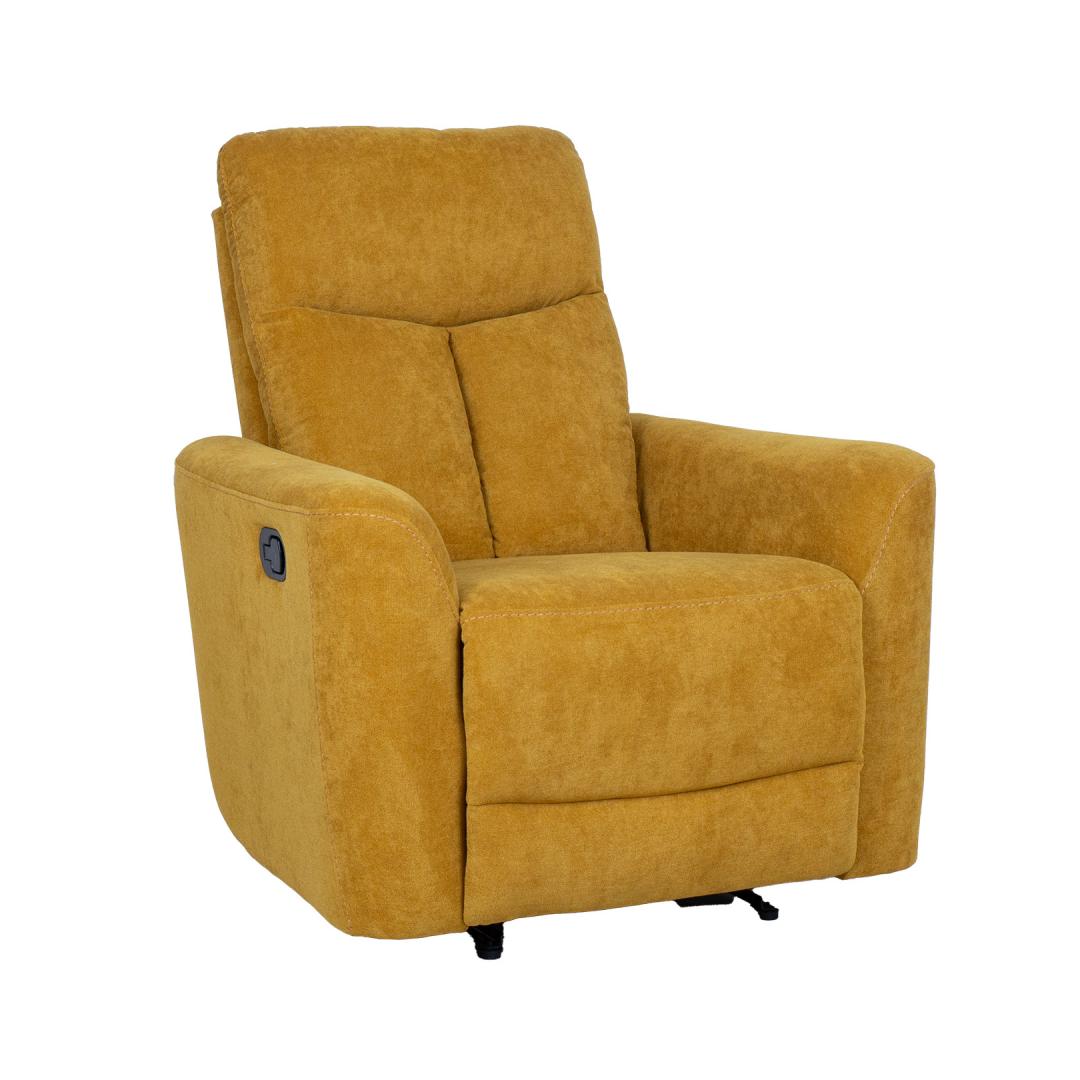 Tugitooli üldmõõdud on 89x98xH106cm. Istme laius 51cm, istme sügavus 52cm, istme kõrgus 48cm. Käetoe kõrgus maast 64cm Tugitool GEMMA manuaalne recliner, tumekollane.