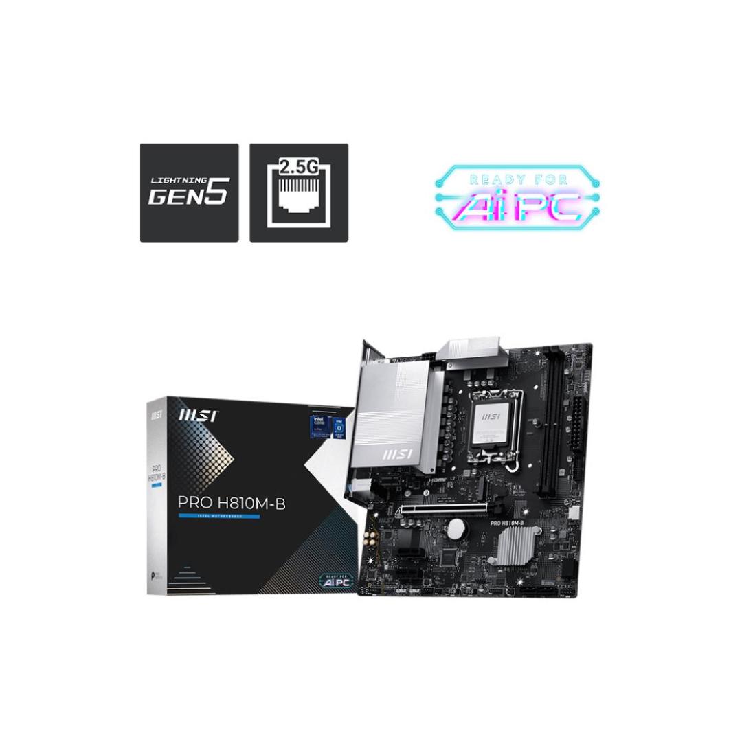 PRO H810M-B offers a simple design with a harmonious silver color scheme that perfectly matches both white and black PC builds. It is engineered with 2.5G LAN and PCIe 5.0, ready for the Intel® Core™ Ultra processors.