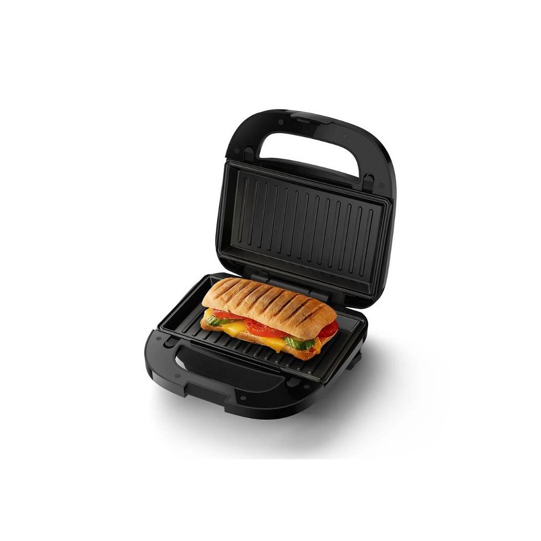 Makes crispy, golden hot sandwiches, filled sandwiches and even waffles. The Philips 5000 Series sandwich toaster heats powerfully and evenly on removable plates with a non-stick coating, making it very convenient and easy to clean.