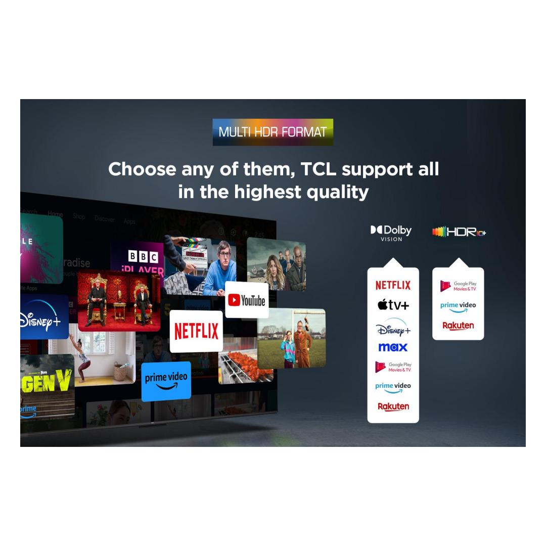 Featuring high quality speakers, you can enjoy immersive Dolby Atmos sound quality or pass it to a TCL sound bar.