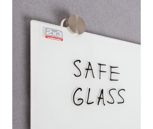 Магнитная доска из закаленного стекла. Стеклянная таблетка обладает отличными пишущими и очищающими свойствами. Очень прочное и современное решение для любого офиса.В комплекте магниты (6 шт.) и специальный маркер для стекла.