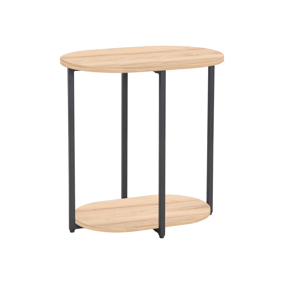 Lauajalad on valmistatud metallist ja viimistletud musta pulbervärviga. Ovaalne abilaud HANNES 52x35xH54cm, rustik melamiin.