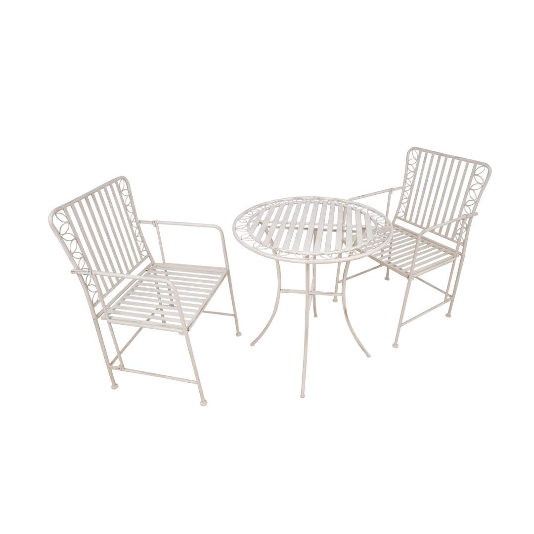 Rõdukomplekt JASMINE laud ja 2 tooli, antiikvalge metall.
