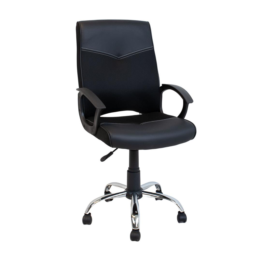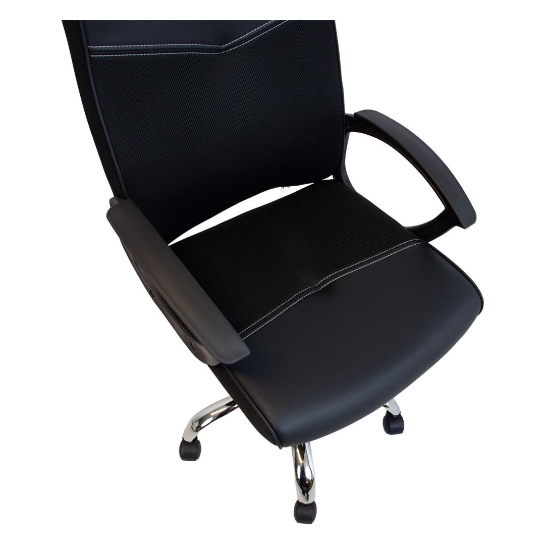 Tooli kergelt polsterdatud iste ja seljatugi on kaetud kunstnaha ja polüestervõrkkangaga.