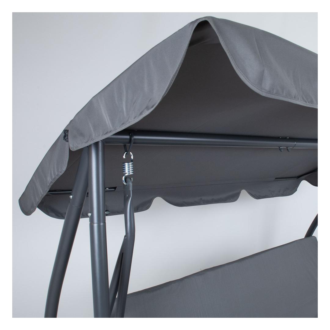 Kiige katuseraam on kaetud halli polüesterkangaga (180g/m²). Katuse kaldenurk on reguleeritav.