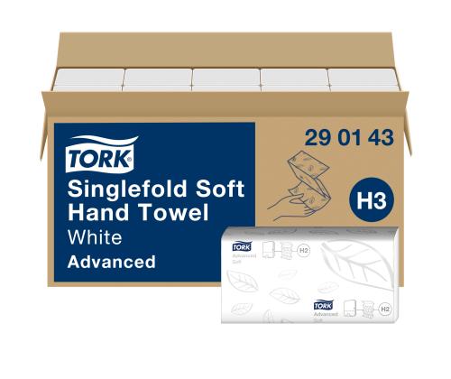 Листовое полотенце Tork Singlefold Soft Advanced. • Размеры листа: 23x22,6см. • В упаковке: 180 листов. • Ширина в сложенном виде: 11,5см.