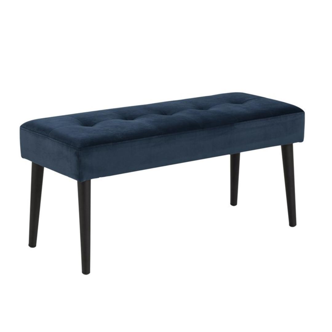 Скамейка GLORY 38x95xH45см, сиденье: бархат, цвет: морской синий, ножки: черный металл, ткань VIC темно-синий 66. Ограничение по весу: 100 кг.