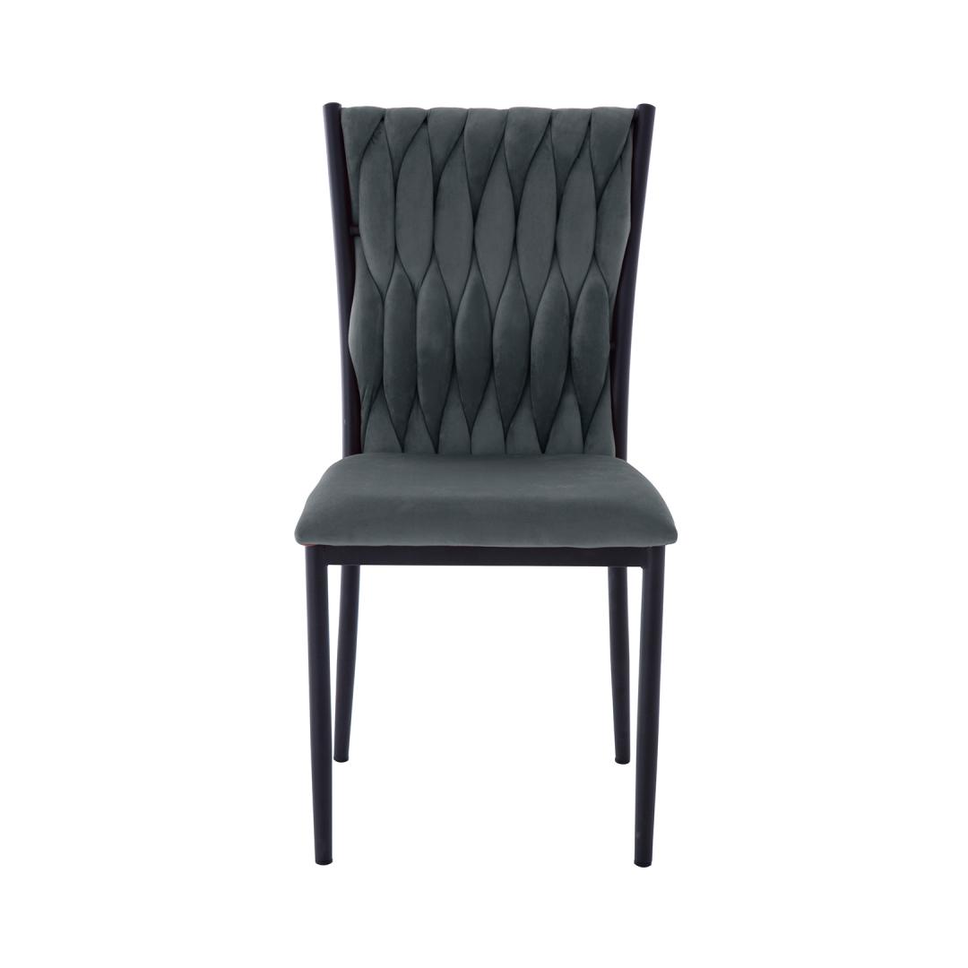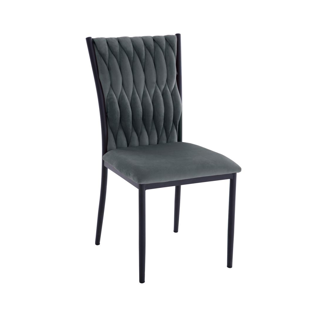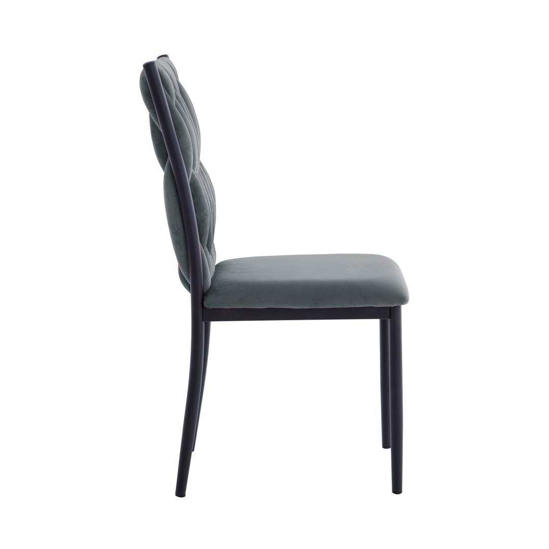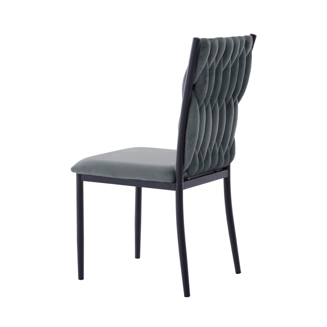 Стул ЭМОРИ серый бархат. Сиденье и спинка кресла обиты и обтянуты бархатной тканью. Объемная набивка спинки, напоминающая мягкие волны, достигается с помощью техники плетения. Материал покрытия: 100% полиэстер, 260 г/м². Martindale 25 000. Ножки и основа стула изготовлены из металла и покрыты черной порошковой краской. Габаритные размеры стула 47x59xH93см, ширина сиденья 46см, глубина сиденья 42см, высота сиденья 48см. Высота спинки 51см. Ограничение по весу 120 кг.