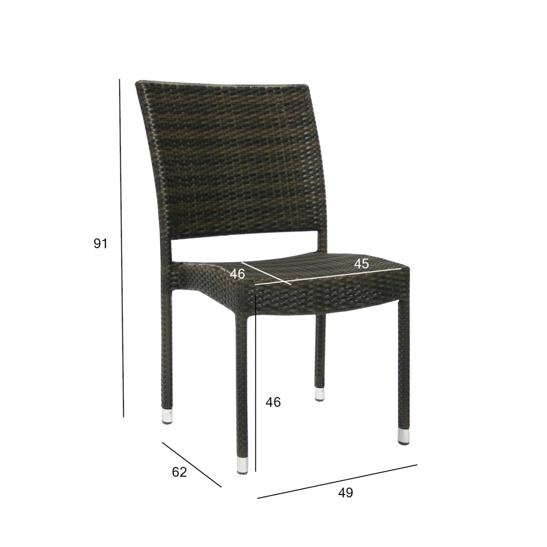 Стул ВИКЕР-3, темно-коричневый. Классический садовый стул с пластиковой оплеткой удобен, прочен и устойчив к атмосферным воздействиям и подходит как для приусадебного участка, так и для кафе. Стул можно комбинировать с другими товарами серии WICKER MIX&MATCH. Прочный и устойчивый алюминиевый каркас стула обтянут пластиковой оплёткой. Стулья можно штабелировать, а их хранение легко и компактно. Пластиковая оплетка не требует особого ухода. Габаритные размеры кресла 49x62xH91см. Ширина сиденья 45 см, глубина сиденья 46 см, высота сиденья 46 см. Высота спинки 51см. Ограничение по весу 100 кг. ХРАНЕНИЕ: В конце летнего сезона мы рекомендуем хранить садовую мебель в помещении. Очистите и высушите мебель перед хранением. Для хранения используйте прохладное, сухое и хорошо проветриваемое помещение.