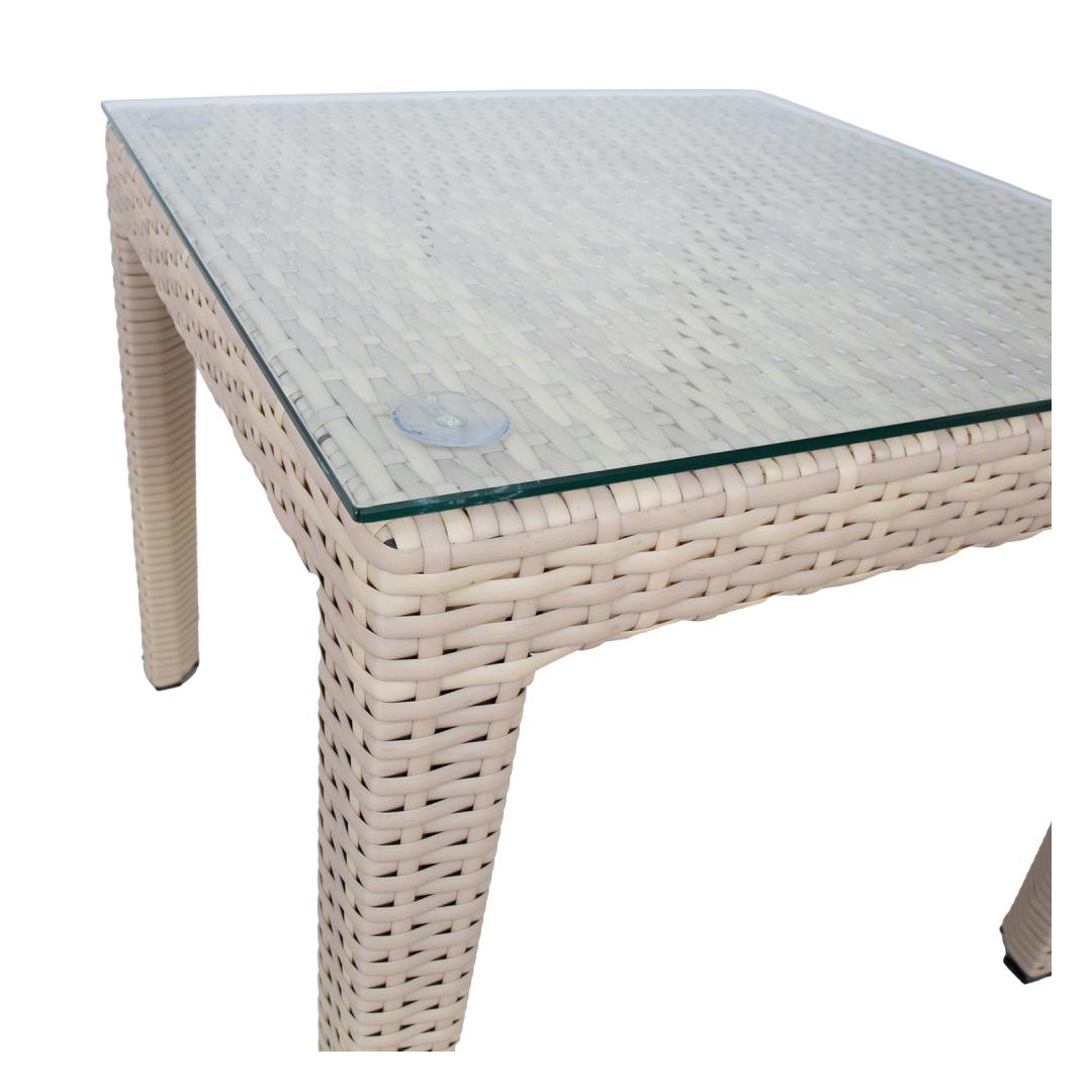Приставной столик WICKER 50x50xH45см, бел. Каркас и ножки приставного столика WICKER изготовлены из алюминия и покрыты пластиковой оплеткой. Столешница: закаленное прозрачное стекло толщиной 5 мм. Изделие долговечно в изменяющихся погодных условиях и очень просто в уходе. ХРАНЕНИЕ: В конце летнего сезона рекомендуем хранить садовую мебель в помещении. Перед хранением очистите и высушите мебель. Для хранения используйте сухое и хорошо проветриваемое помещение.