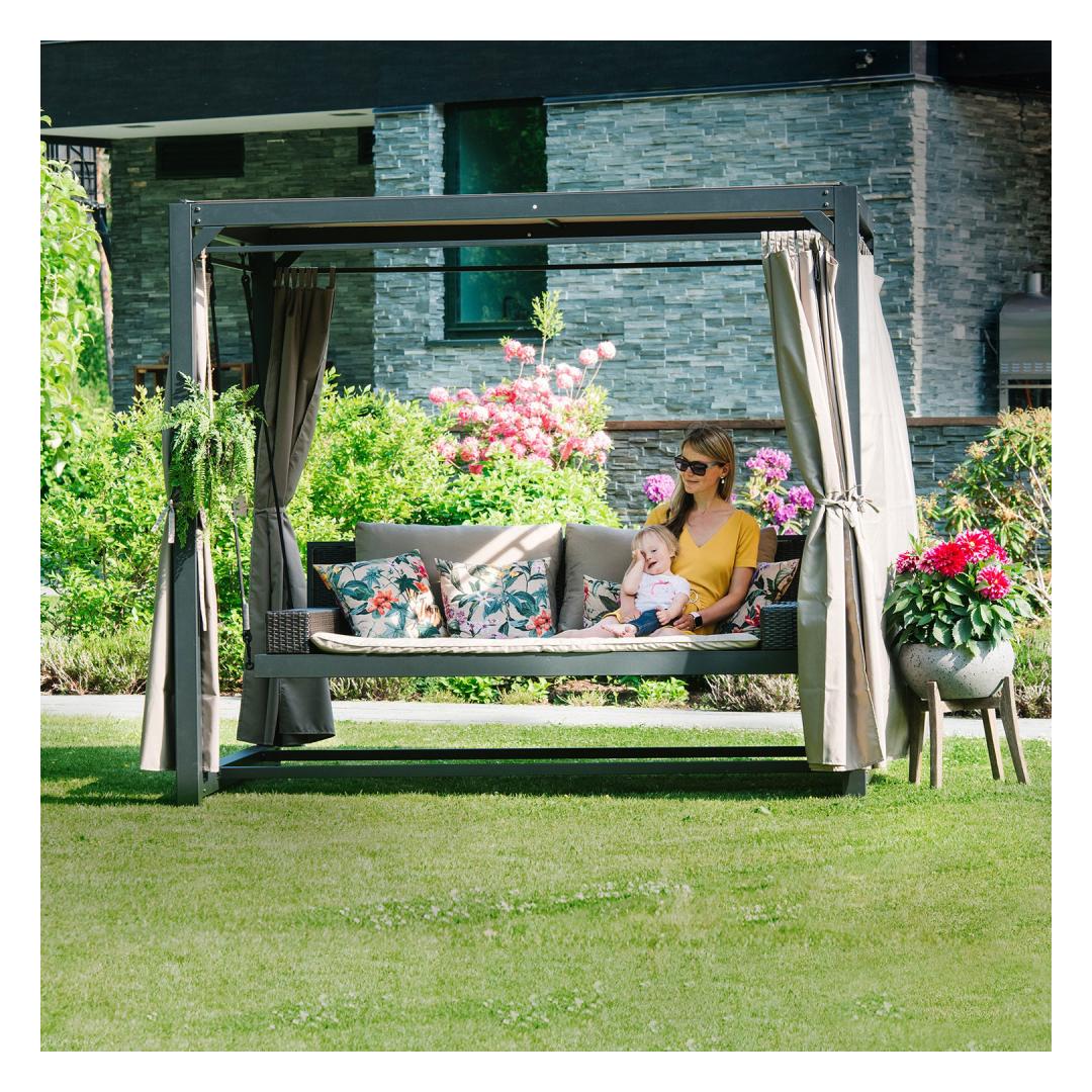 Садовые качели BARCELONA 236x180xH210см, коричневые/бежевые, сталь, пластиковая оплетка, полиэфирная ткань