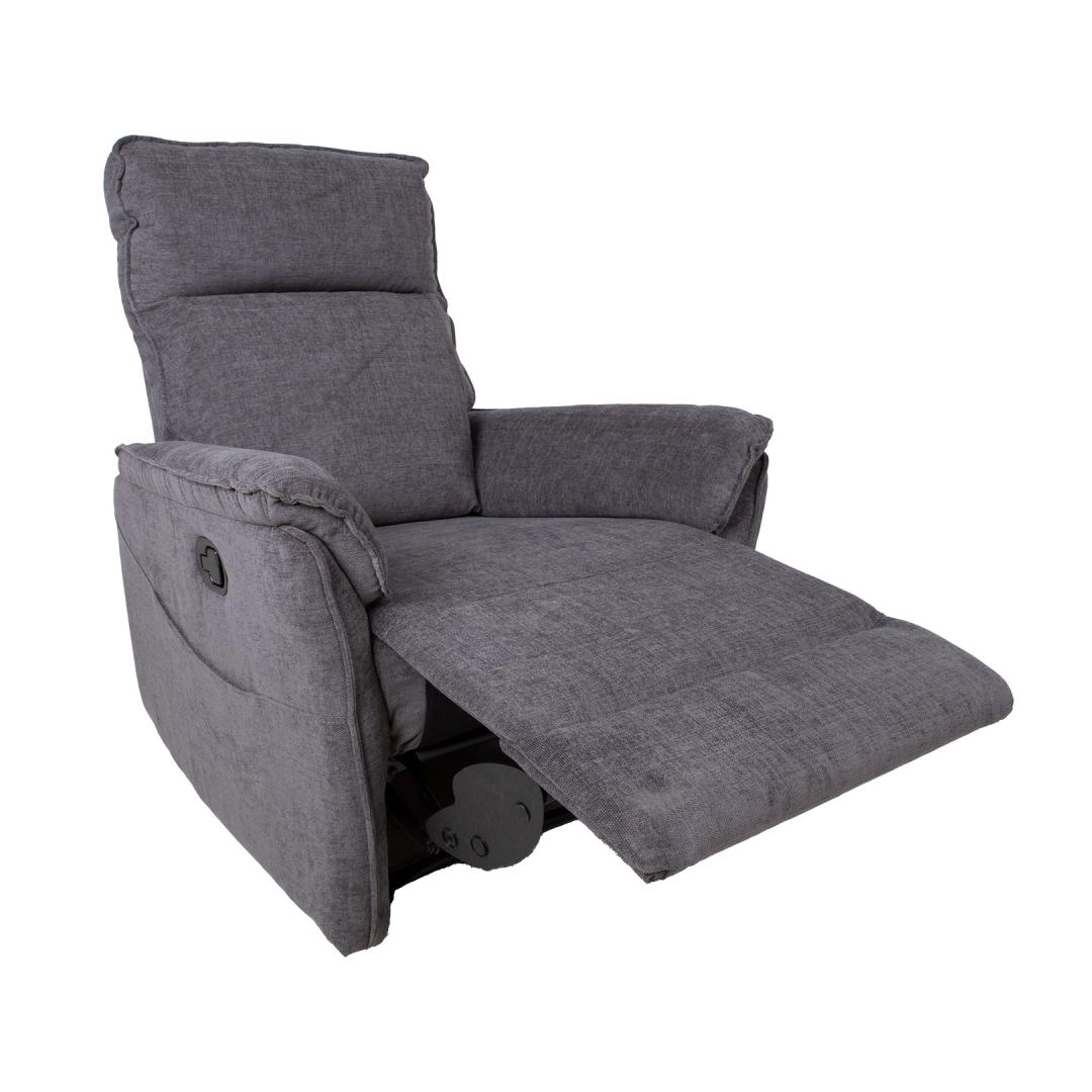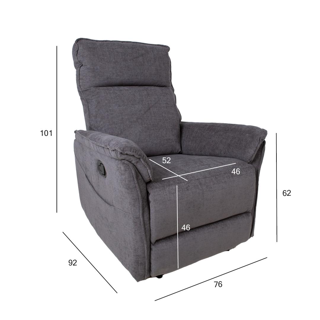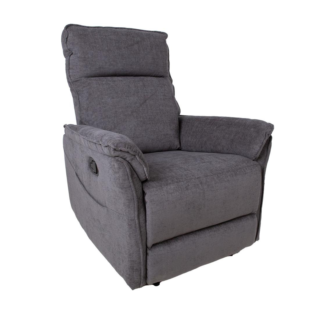 Кресло GERRY с откидной спинкой, 76x92xH101см, серый. Изменить положение подножки кресла типа реклайнер можно с помощью ручного механизма. Чтобы поднять подставку для ног, потяните вверх рычаг справа снаружи кресла. Когда вы нажимаете на подставку для ног, она автоматически фиксируется в исходном положении. Материал покрытия: ткань 100% полиэстер, Martindale 15 000. Каркас и подвес: фанера, металл. Карманные пружины. Обивка: пенополиуретан, полиэфирные волокна. Габаритные размеры кресла 76x92xH101см. Ширина сиденья 46 см, глубина сиденья 52 см, высота сиденья 46 см. Высота спинки 65см. Высота подлокотника от земли 62 см.