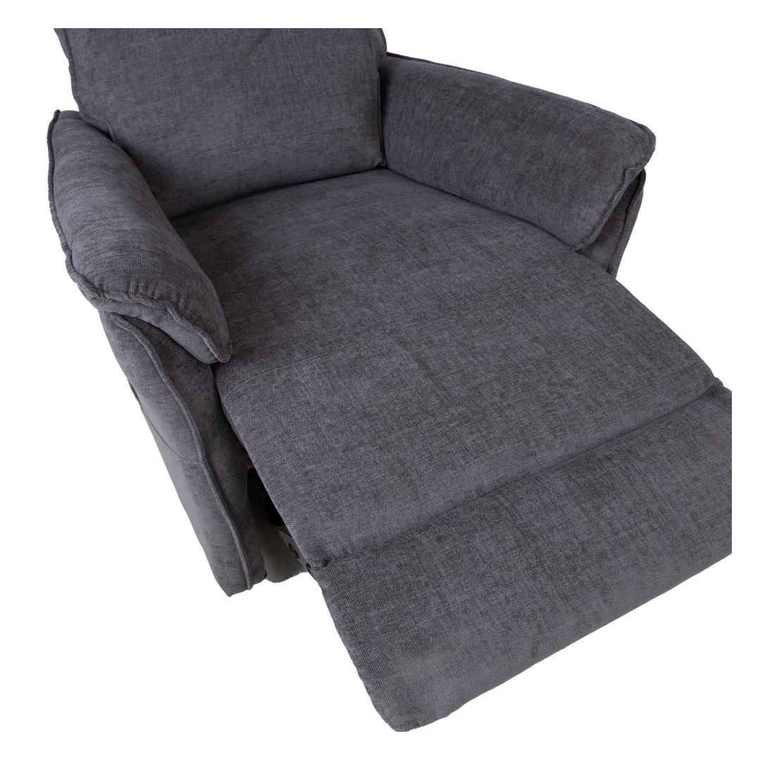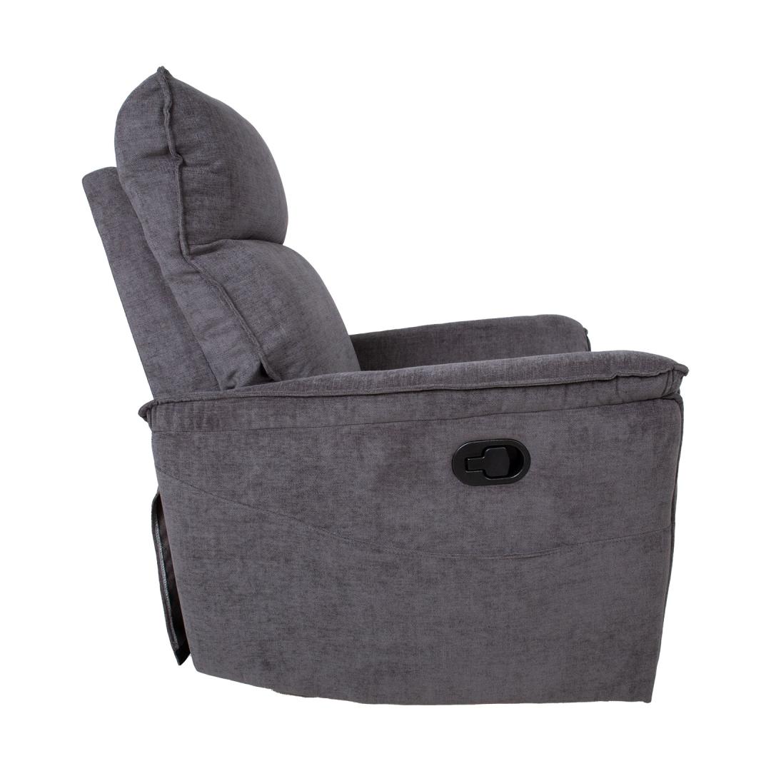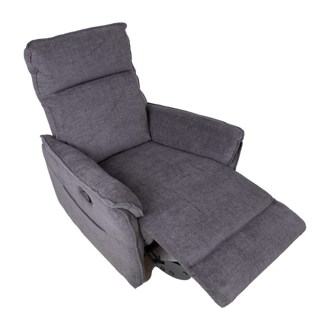 Кресло GERRY с откидной спинкой, 76x92xH101см, серый. Изменить положение подножки кресла типа реклайнер можно с помощью ручного механизма. Чтобы поднять подставку для ног, потяните вверх рычаг справа снаружи кресла. Когда вы нажимаете на подставку для ног, она автоматически фиксируется в исходном положении. Материал покрытия: ткань 100% полиэстер, Martindale 15 000. Каркас и подвес: фанера, металл. Карманные пружины. Обивка: пенополиуретан, полиэфирные волокна. Габаритные размеры кресла 76x92xH101см. Ширина сиденья 46 см, глубина сиденья 52 см, высота сиденья 46 см. Высота спинки 65см. Высота подлокотника от земли 62 см.