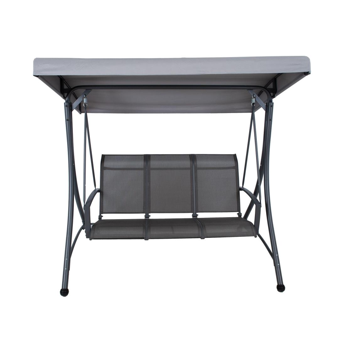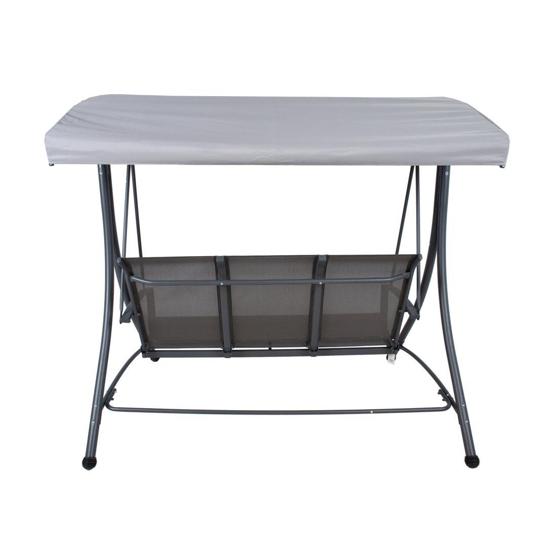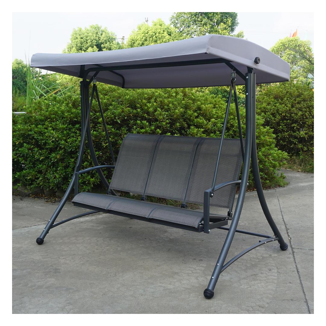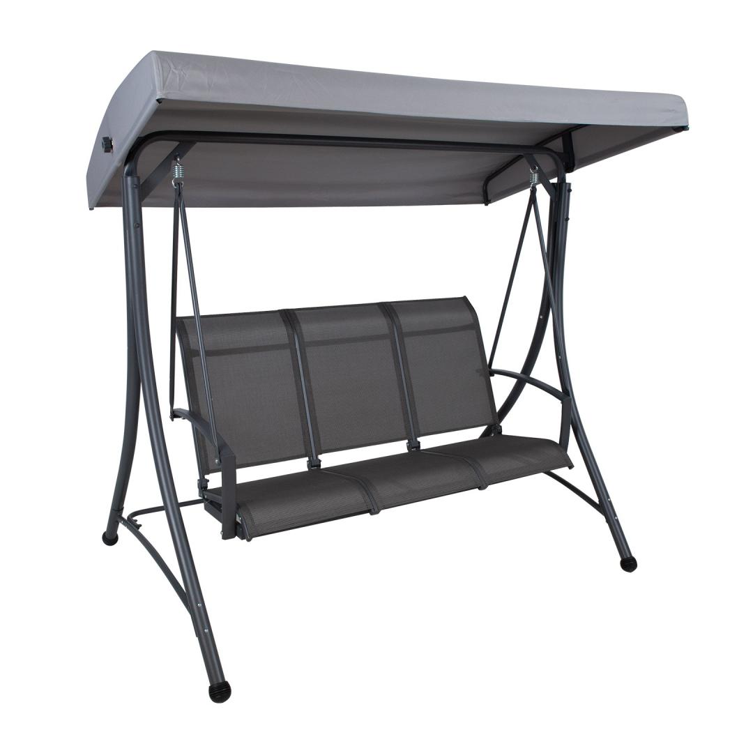 Садовые качели ТАМПА 3-местные, серые. Сиденье качелей, покрытое текстильным материалом, хорошо пропускает воздух, быстро сохнет и легко чистится. Каркас крыши качелей покрыт серой полиэфирной тканью (180 г/м²). Угол наклона крыши регулируется. Прочная и устойчивая стальная рама качелей окрашена порошковой краской серого цвета. Габаритные размеры качелей 195x130xH178см. Размеры трубы каркаса D48/38/25/22мм, размеры подлокотника 49х20мм. Ограничение по весу 250 кг. Изделие очень прочное в изменяющихся погодных условиях и простое в уходе. Чтобы продлить срок службы качелей, рекомендуем использовать чехлы для садовой мебели. ХРАНЕНИЕ: В конце летнего сезона рекомендуем хранить садовую мебель в помещении. Перед хранением очистите и высушите мебель. Для хранения используйте сухое и хорошо проветриваемое помещение.