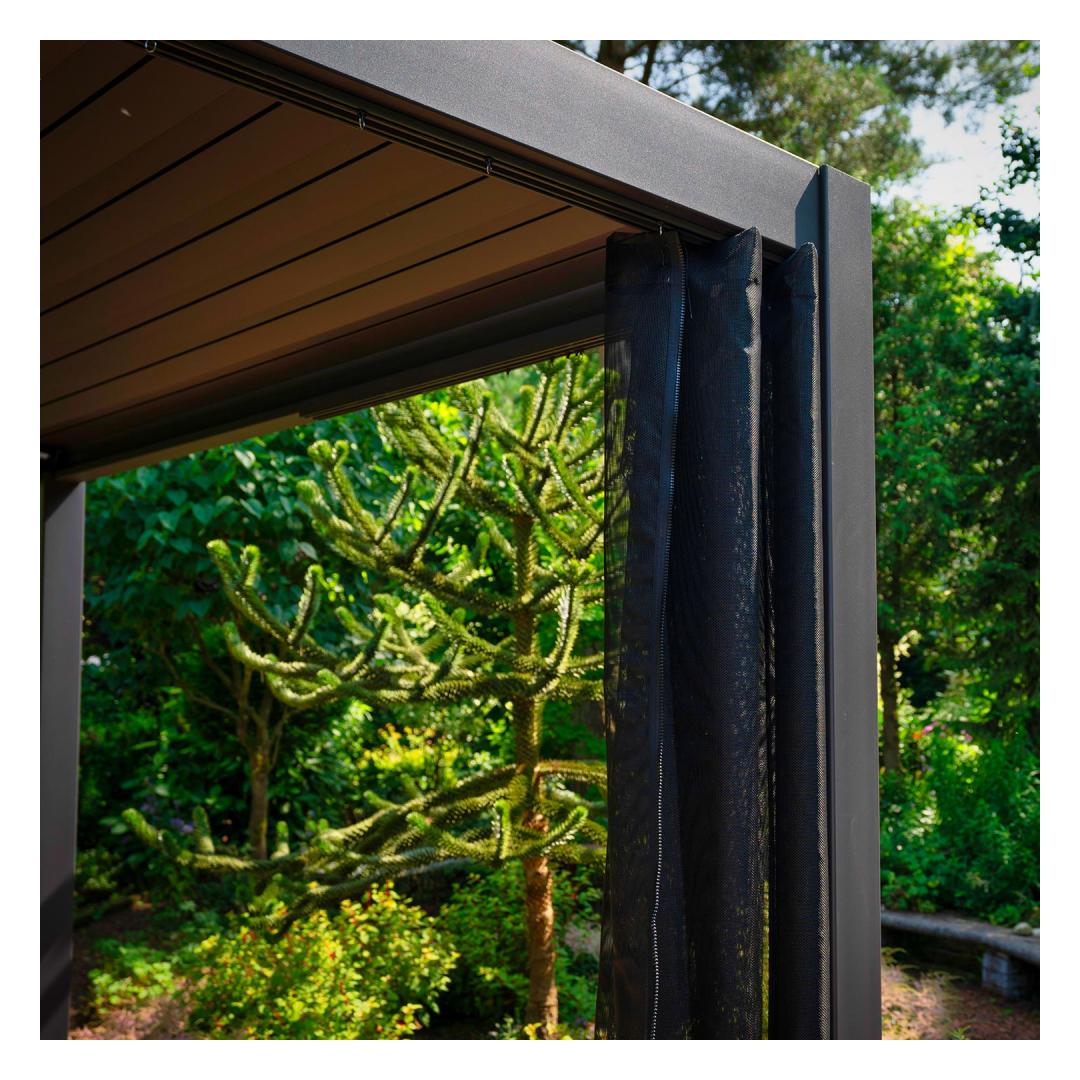 Шторы для маркиз МИРАДОР 3х4м. Стальные двухрядные карнизы предназначены для подвешивания боковых стенок из полиэстера или текстиля, а также противомоскитных сеток на навес МИРАДОР. В комплект входят рельсы для 4 сторон балдахина и крючки для подвешивания штор. Размеры одной рейки 77,5х38х1,5мм, длина 3/4м.