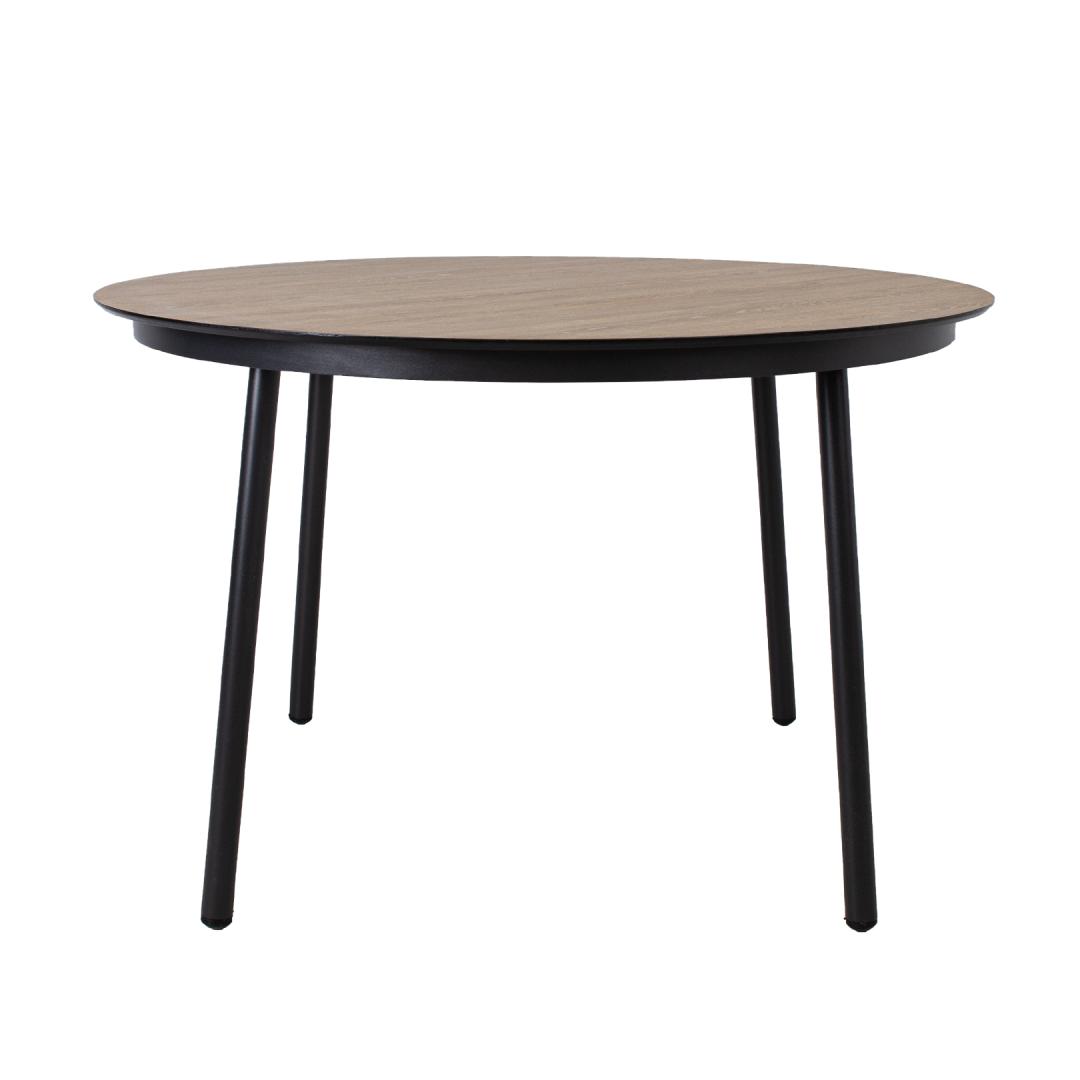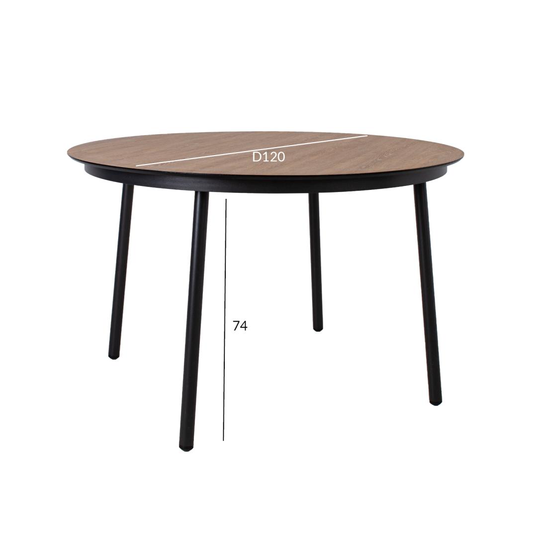 Стол ХЕЛЬСИНКИ Д120хВ74см. Столешница: атмосферостойкий ламинат высокого давления с декором из тика. Каркас и ножки стола изготовлены из алюминия и окрашены порошковой краской черного цвета. Изделие очень прочное в изменяющихся погодных условиях и простое в уходе. ХРАНЕНИЕ: В конце летнего сезона рекомендуем хранить садовую мебель в помещении. Перед хранением очистите и высушите мебель. Для хранения используйте сухое и хорошо проветриваемое помещение.