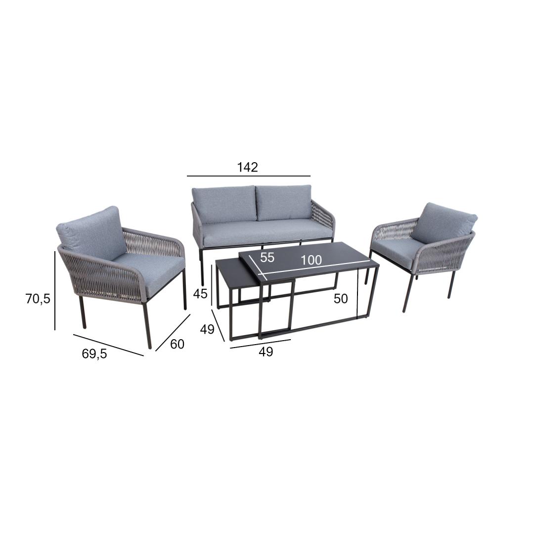 Комплект садовой мебели LEVINE 2 стола, диван и 2 стула, серый