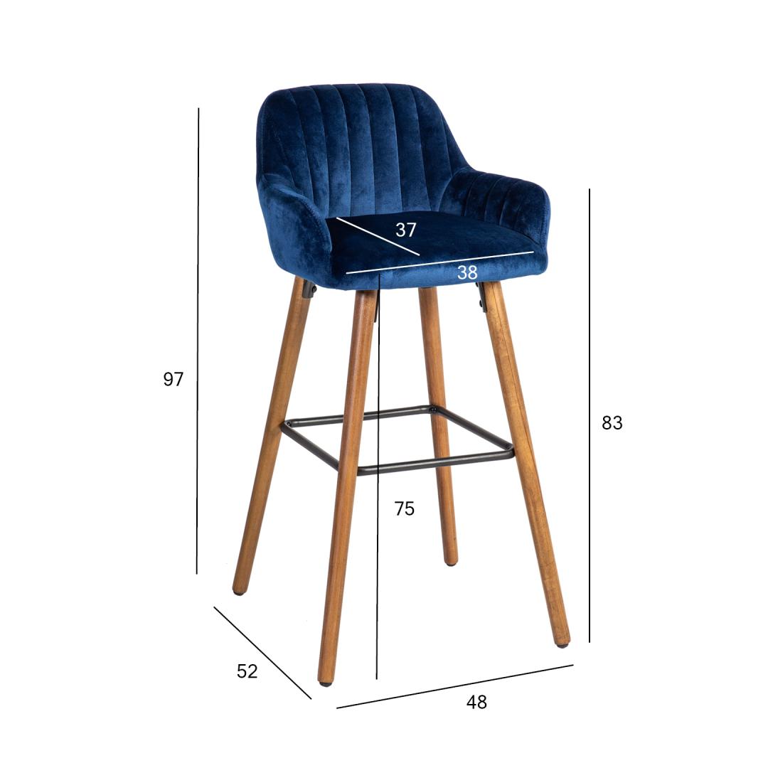 Барный стул ARIEL 48x52xH97см, материал покрытия: ткань, цвет: морской синий, ножки из бука. Высота сиденья от земли 69см. Дополнительная информация: ограничение по весу 100 кг.