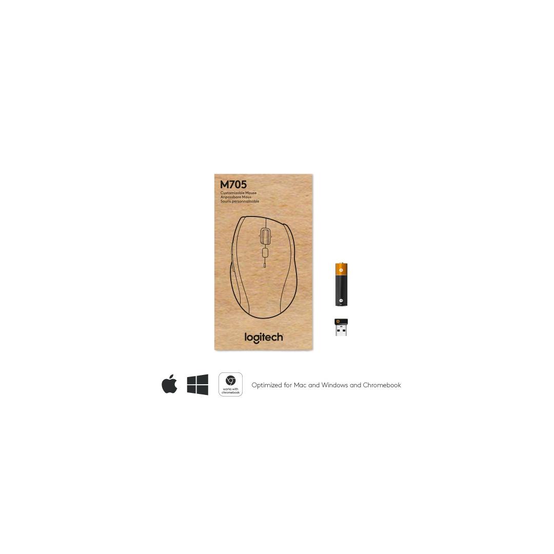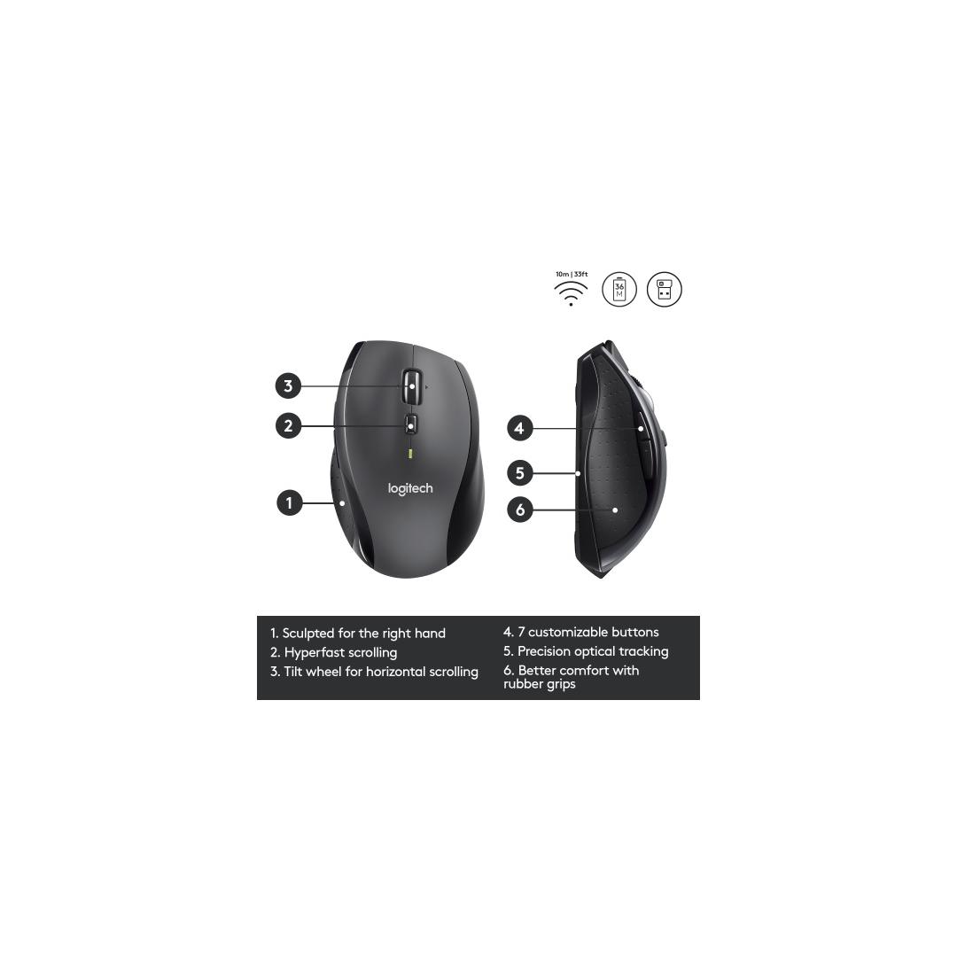 Logitech Marathon M705 Wireless Mouse, RF Wireless, 1000 DPI, Charcoal