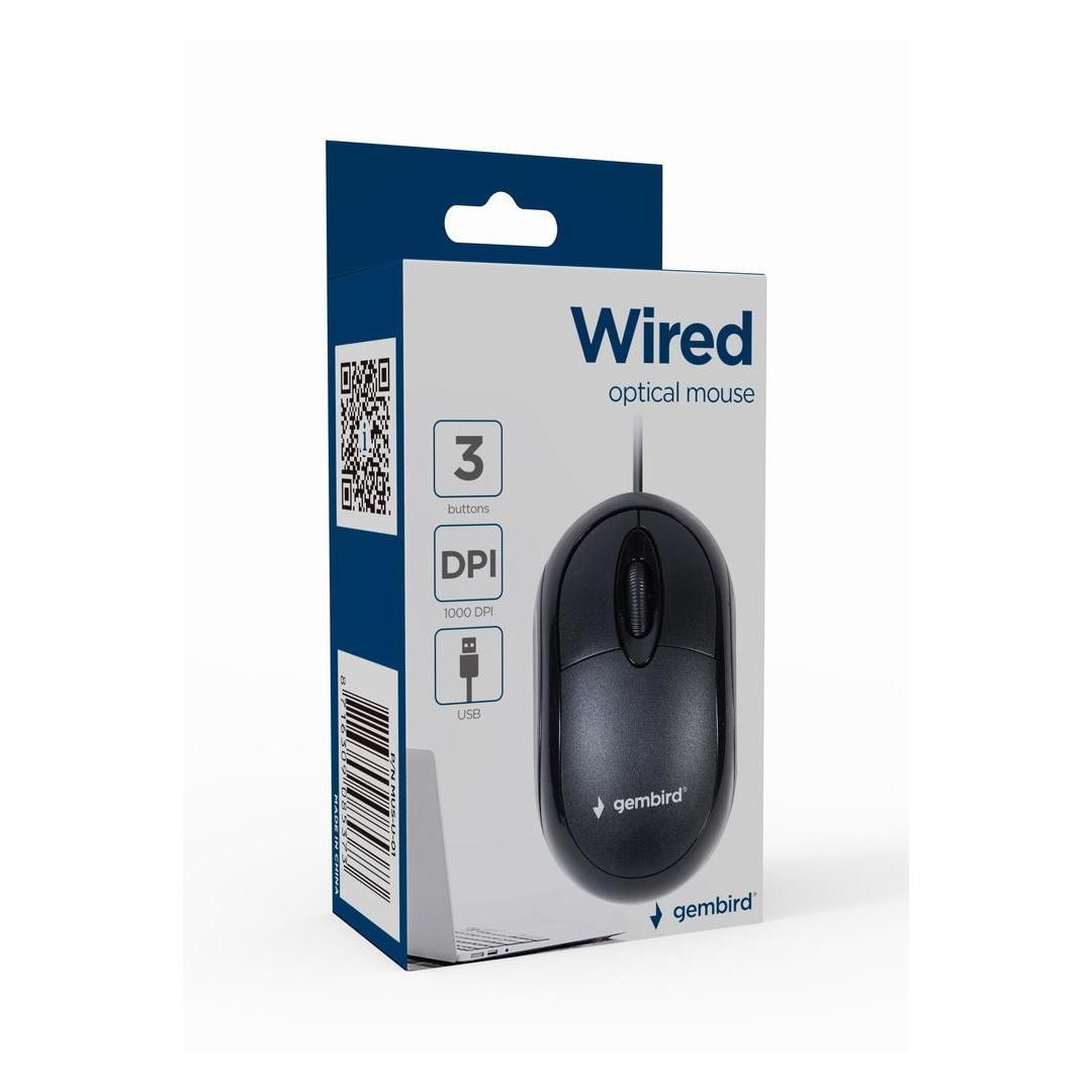 Gembird MUS-U-01. Form factor: Ambidextrous. Movement detection technology: Optical, Device interface: USB Type-A, Movement resolution: 1000 DPI, Buttons type: Pressed buttons, Buttons quantity: 3, Scroll type: Wheel. Power source: Cable. Product colour: Black