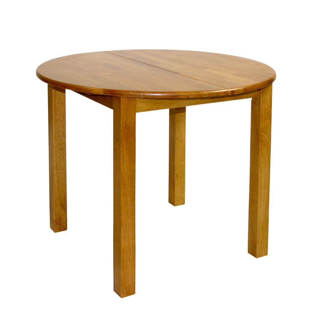 Набор обеденных столов MIX & MATCH, раздвижной стол и 4 стула. Размеры стола D90+30xH74см. Стол изготовлен из каучукового дерева и покрыт лаком светлого цвета дуба. Столешница открывается посередине, а между двумя половинками размещается удлинитель. Под столешницей размещается складная промежуточная пластина шириной 30 см. Размеры стула 43x43xH90,5см. Мягкое сиденье обтянуто черной искусственной кожей. Ножки и рама из каучукового дерева покрыты светлым дубовым лаком. Ограничение по весу 100 кг.