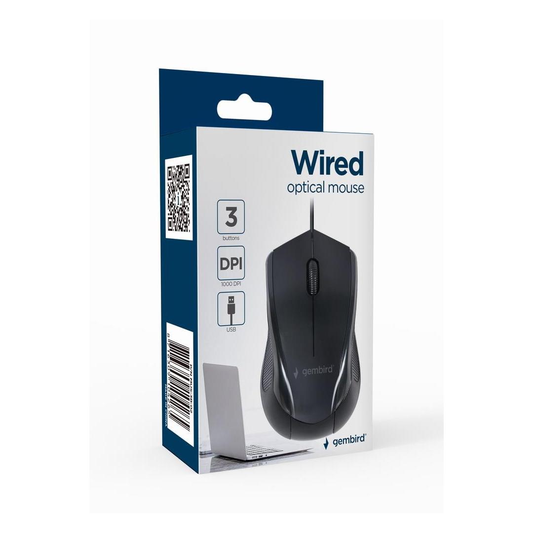 Gembird MUS-3B-02. Form factor: Ambidextrous. Movement detection technology: Optical, Device interface: USB Type-A, Movement resolution: 1000 DPI, Buttons type: Pressed buttons, Buttons quantity: 3, Scroll type: Wheel. Power source: Cable. Product colour: Black