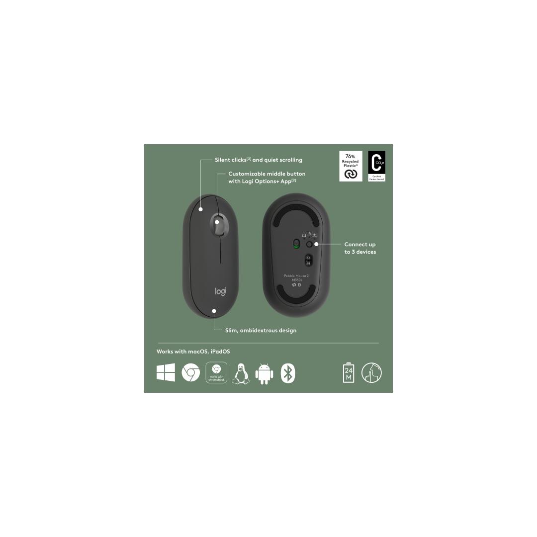 Logitech Pebble 2 M350s Wireless Mouse, RF Wireless + Bluetooth, 4000 DPI, Tonal Graphite