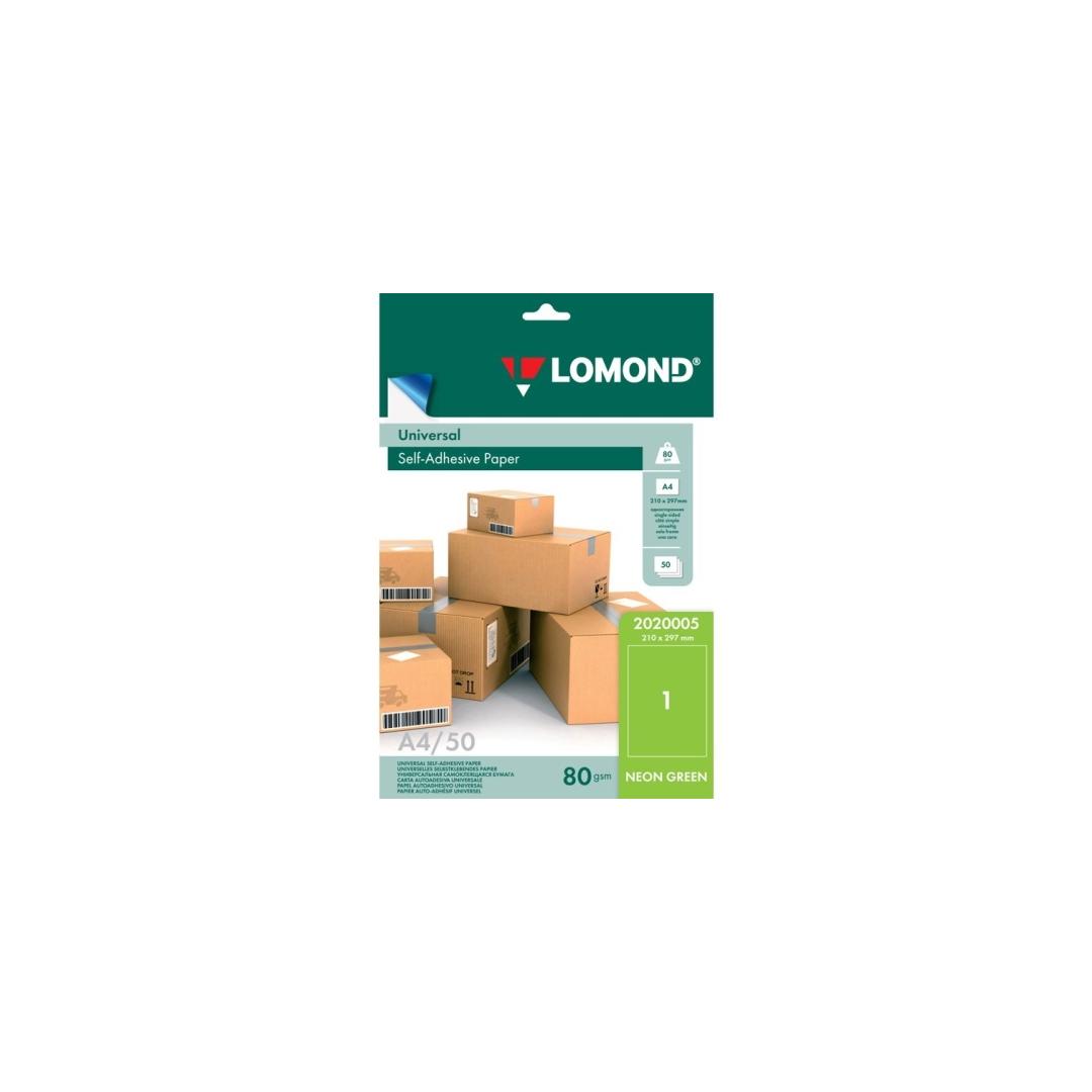 Lomond Self-Adhesive Paper Universal Labels, 1/210x297, A4, 50 sheets, Green neon
