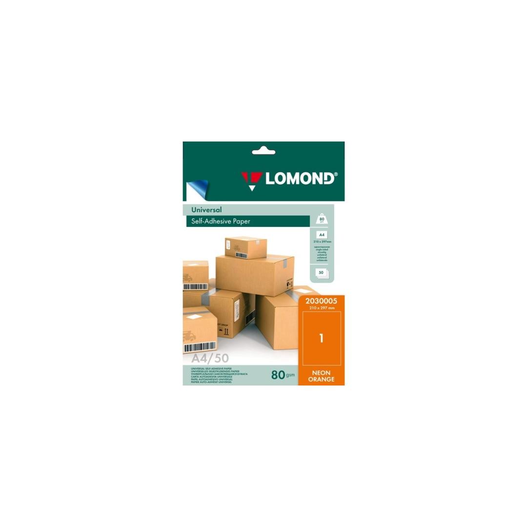 Lomond Self-Adhesive Paper Universal Labels, 1/210x297, A4, 50 sheets, Orange neon