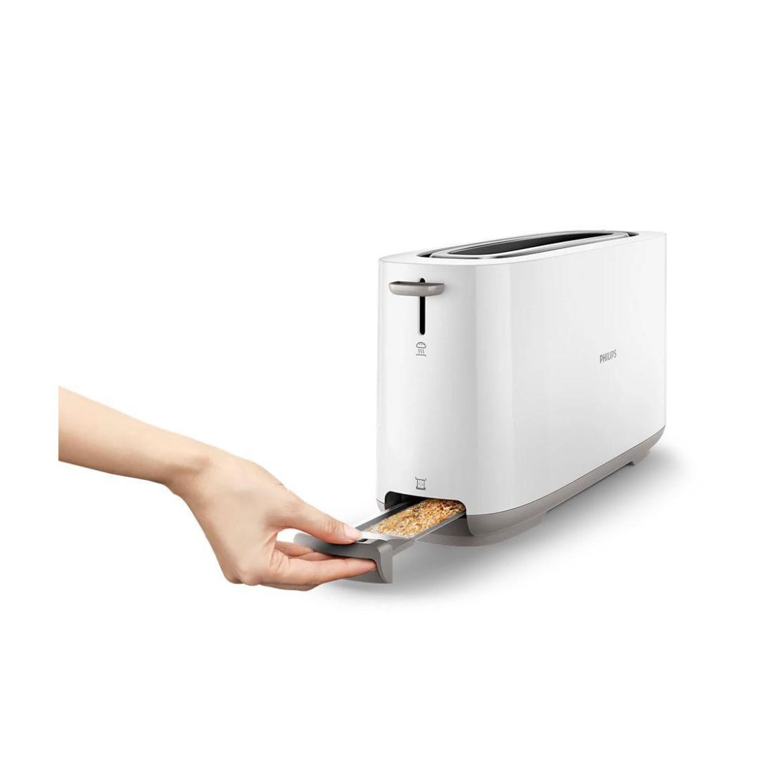 A toaster with a long slot and 8 settings for an even golden brown result, no matter what you're toasting or how you like it. A built-in bun warmer rack is perfect for everything from rolls to croissants.