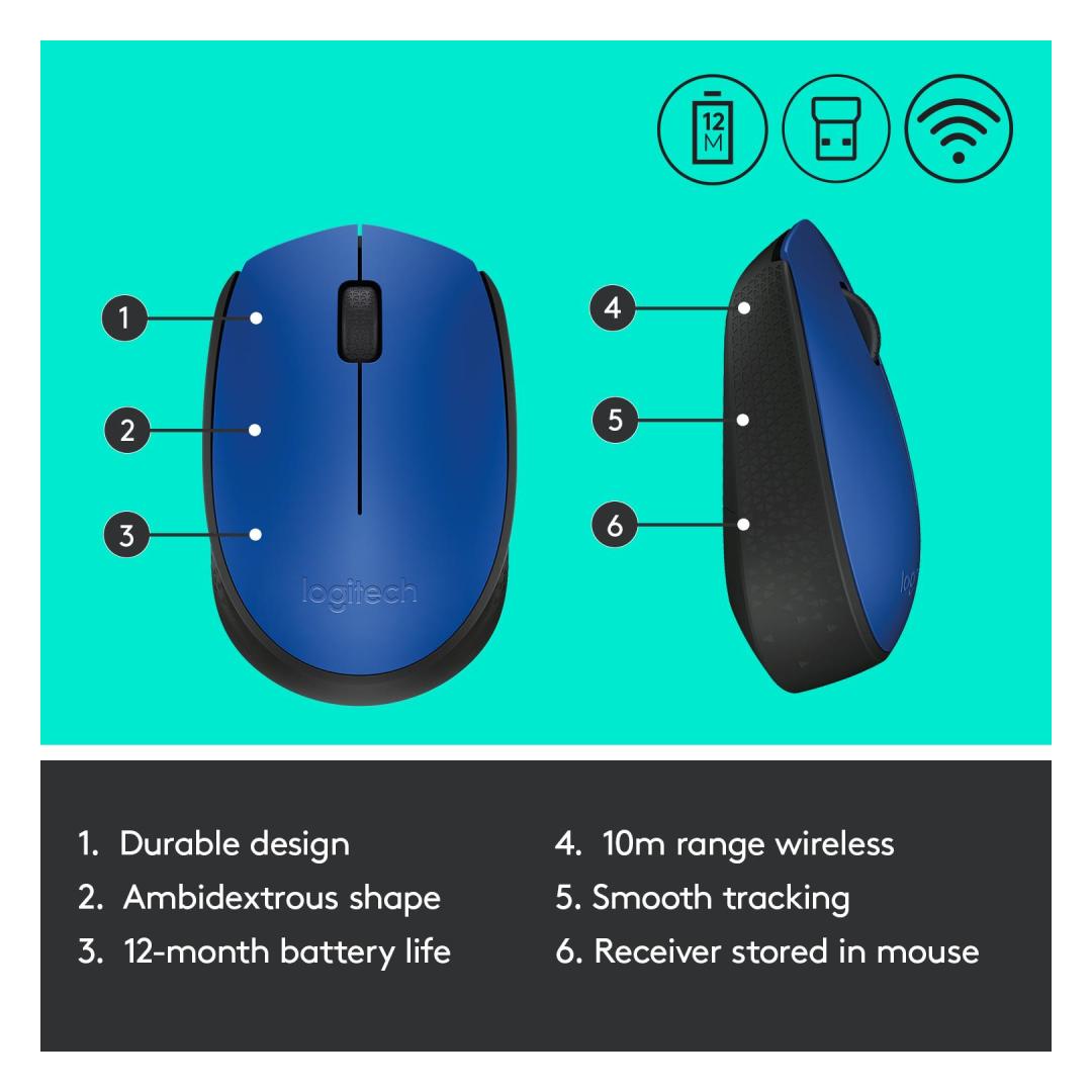 MOUSE USB OPTICAL WRL M171/BLUE 910-004640 LOGITECH