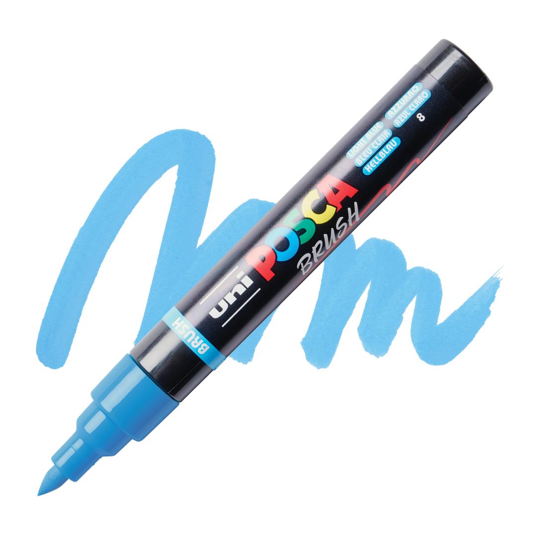 Маркер для рисования UNI Posca PC5BR, светло-голубой, с кисточкой, 1-4 мм