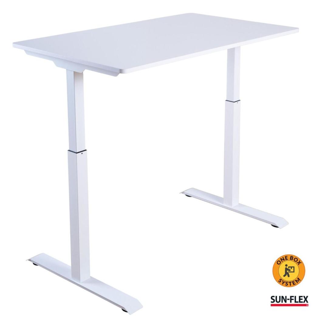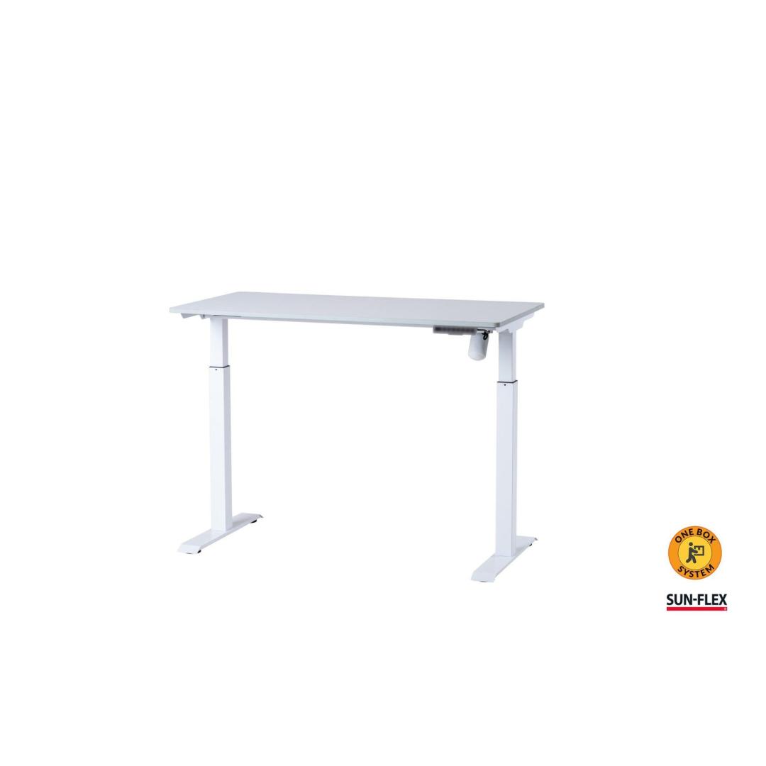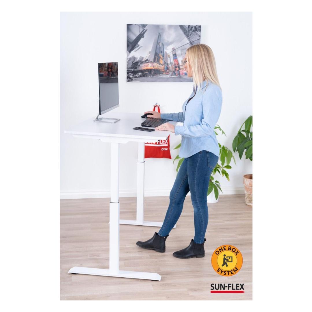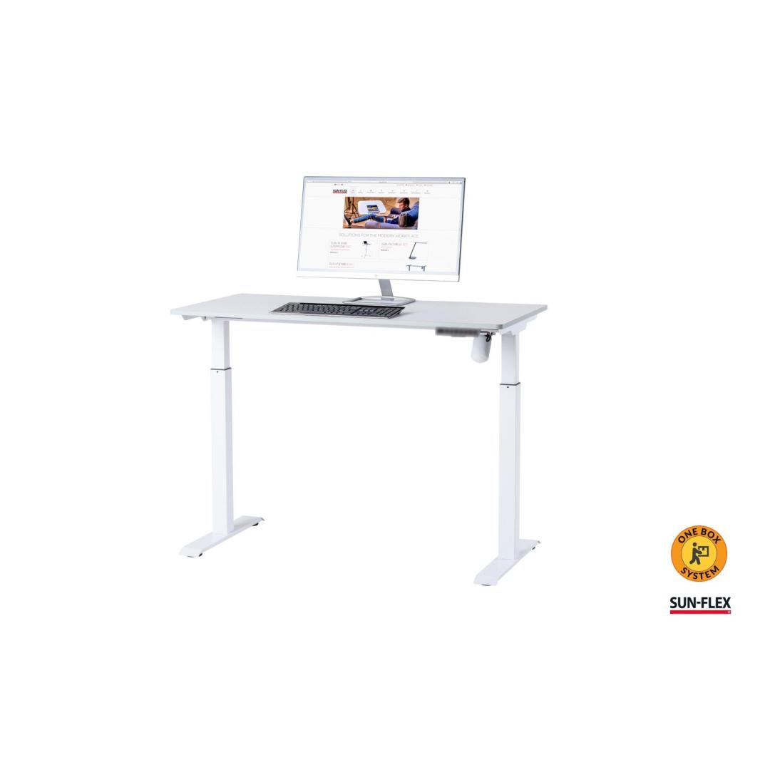 Регулируемый по высоте стол Благодаря компактным размерам, SUN-FLEX®EASYDESK ELITE идеально подходит как для обычных офисов, так и для домашних кабинетов. Разработан в Швеции, гарантируется высокое качество и соответствие строгим требованиям. Двигатель заключен в изоляционные материалы, что обеспечивает низкий уровень шума даже в офисах открытого типа — менее 30 децибел. Каркас стола изготовлен из стали, столешница — из МДФ. Максимальная грузоподъемность стола — 120 кг, максимальная грузоподъемность в поднятом состоянии — 80 кг. Панель управления с четырьмя отдельными настройками памяти и ЖК-дисплеем. Регулируемые ножки. Регулировка высоты от 71 до 119 см, скорость 38 мм/с. Толщина столешницы 15 мм. Глубина ножек стола: 57,5 ​​см. • Диапазон регулировки высоты: 710-1190 мм • Диапазон подъема: 480 мм • Столешница того же цвета, что и ножки • Столешница из МДФ толщиной 15 мм, закругленные углы • Размеры: 1200 x 600 мм • 1 электродвигатель • Грузоподъемность: 80 кг • Скорость подъема: 38 мм/сек • Уровень шума ниже 30 дБ • Ножки из 2 частей • Пульт дистанционного управления с памятью (4 положения) • Датчик защиты от столкновений • Вес: 31 кг • Цвет: белый • Материал: сталь, МДФ, пластик • Гарантийный срок: 5 лет Система «Одна коробка»: Отлично подходит для использования в домашних офисах и во время дистанционного обучения. Оптимальные размеры, компактность и удобная упаковка для транспортировки.