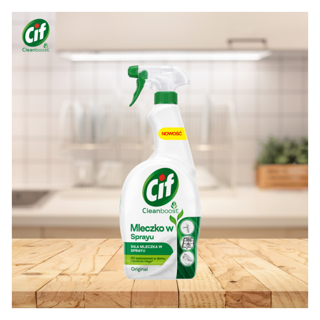 Чистящий спрей Cif с революционной формулой. Эффективное чистящее средство, подходящее для использования на многих бытовых поверхностях и безопасное для использования на кухне. Легко смывается и не оставляет белых следов.
