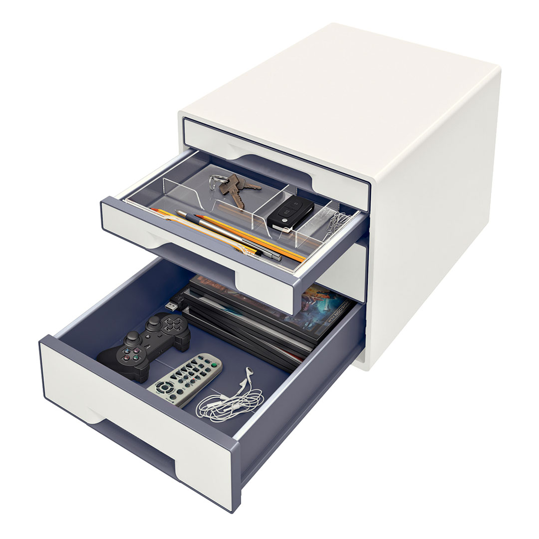 Ящик для хранения вещей Leitz WOW Desk Cube, 4 ящика, 287x270x363 мм, глянцевый, бело-серый.