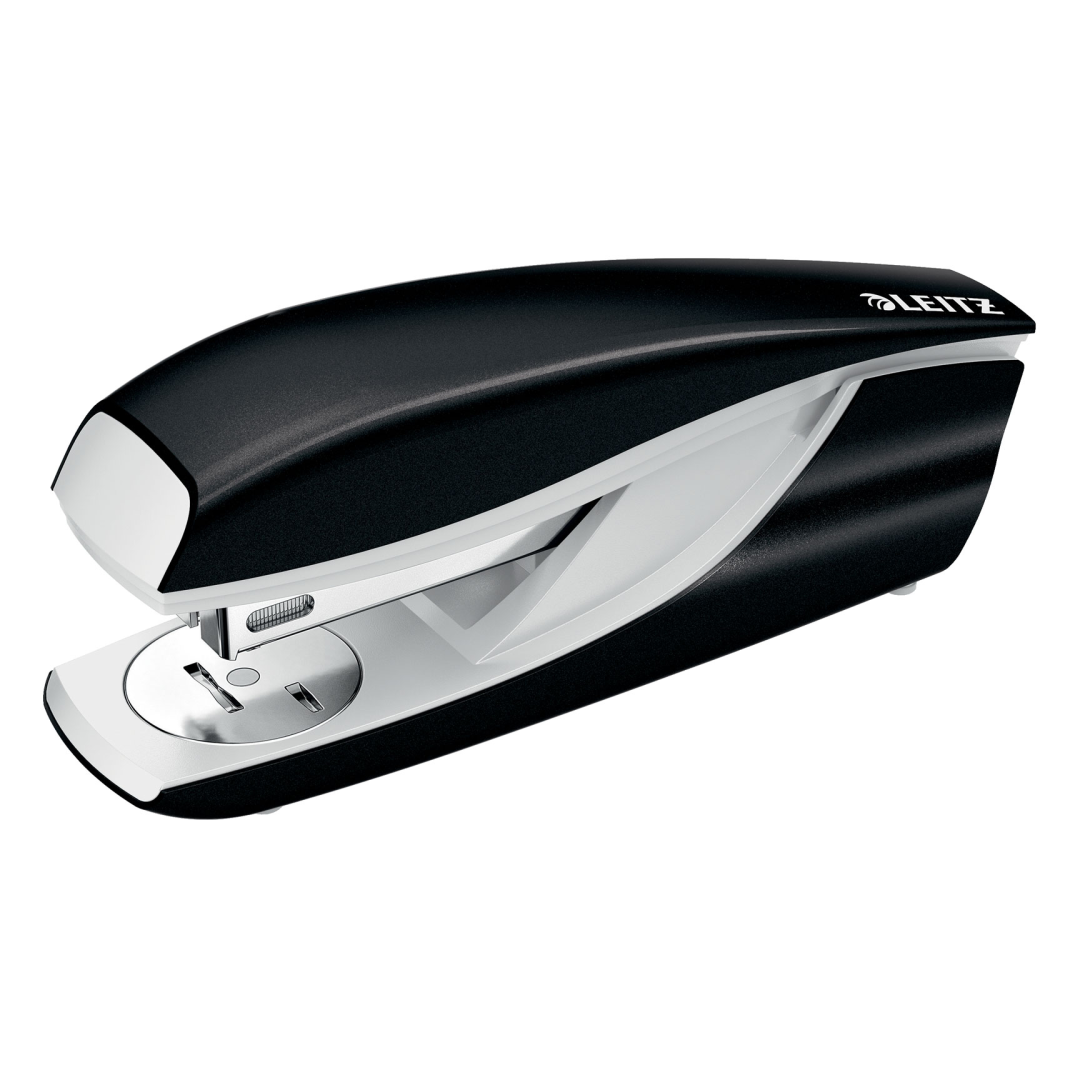 Степлер Leitz Wow 5502. Идеально подходит для работы в офисе и дома. • Новая технология — технология прямого удара (DIT), которая всегда гарантирует беспроблемное скрепление • Вместимость: 30 листов (80 г) • Встроенный инструмент для удаления скоб • Открытие на 180 градусов, механизм верхней загрузки • Использует скобы 24/6 и 26/6 • Гарантия: 10 лет • Цвет: черный