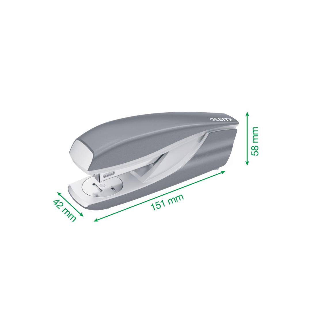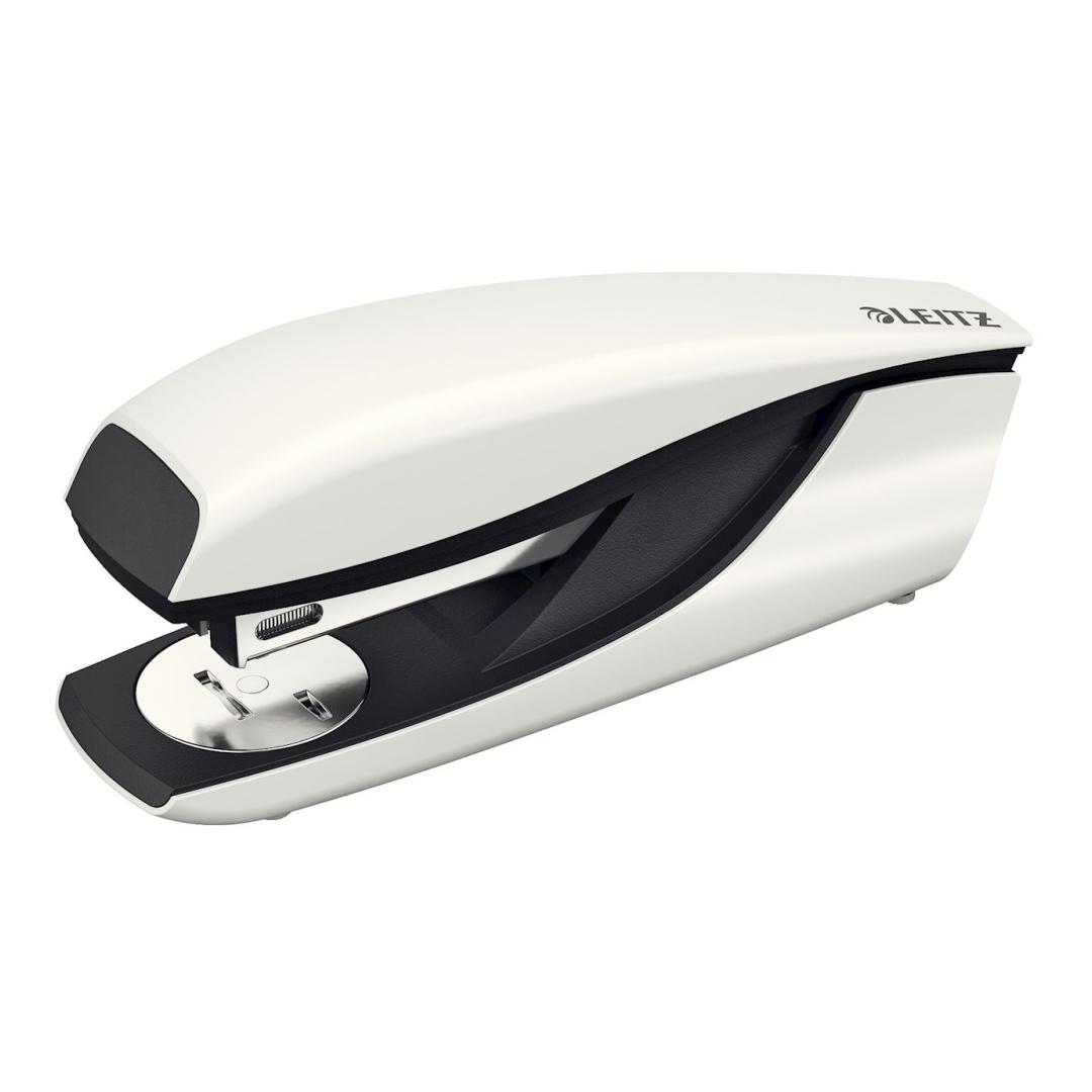 Степлер Leitz Wow 5502. Идеально подходит для работы в офисе и дома. • Новая технология — технология прямого удара (DIT), которая всегда гарантирует беспроблемное скрепление • Вместимость: 30 листов (80 г) • Встроенный инструмент для удаления скоб • Открытие на 180 градусов, механизм верхней загрузки • Использует скобы 24/6 и 26/6 • Гарантия: 10 лет • Цвет: металлический жемчужно-белый