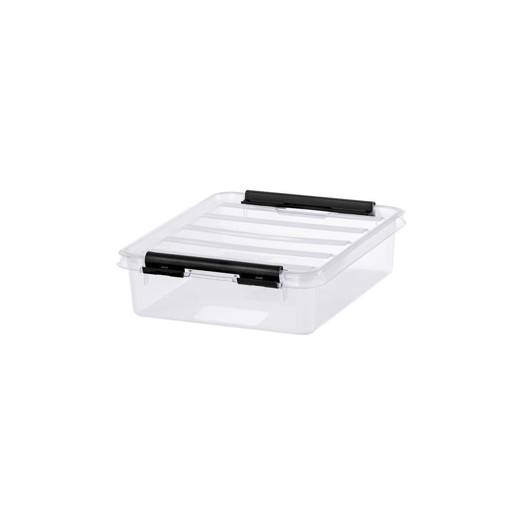 Небольшой и практичный контейнер для хранения, подходящий для мелких предметов. Идеально подходит для хранения всевозможных мелких вещей, таких как косметика, ручки, мелки, швейные принадлежности или бусины. Зажимы по бокам надежно фиксируют крышку. Подходит для хранения продуктов питания. Контейнеры SmartStore штабелируются. Внешние размеры: 21 x 17 x 6 см Внутренние размеры: 17,4 x 14,7 x 3,9 см Объем: 1 л Материал: пластик Цвет: прозрачно-белый