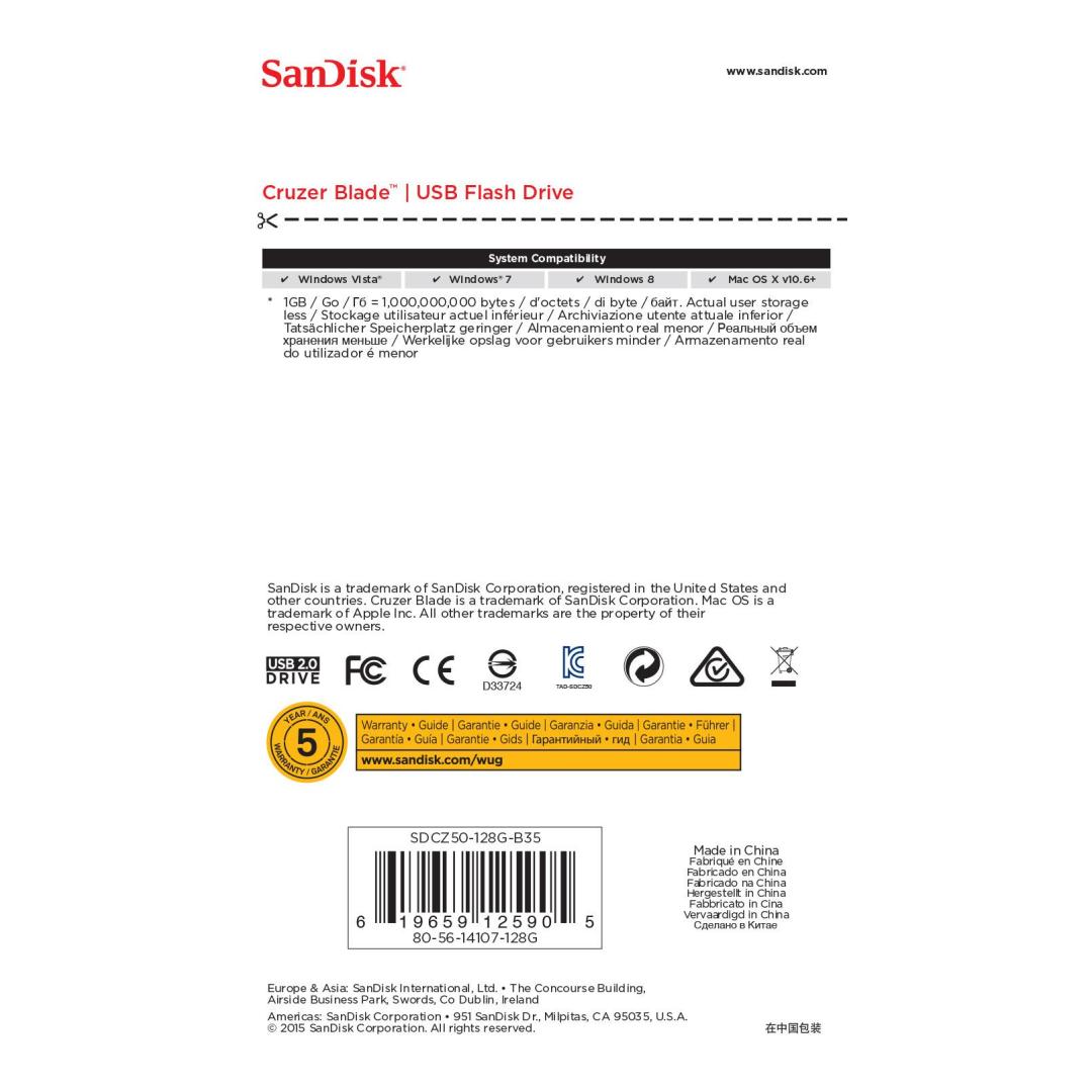 MEMORY DRIVE FLASH USB2 128GB/SDCZ50-128G-B35 SANDISK