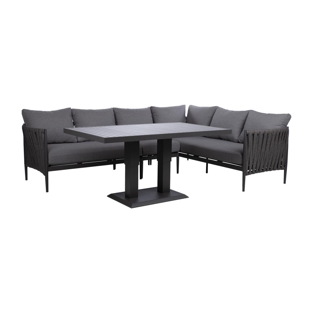 Aiamööblikomplekt BRISTOL nurgadiivan ja muudetava kõrgusega laud, hall.