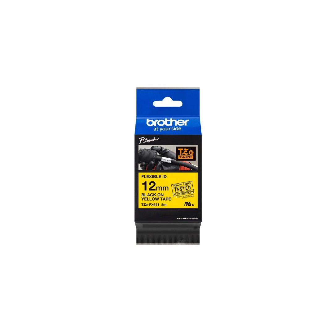 Клейкая лента/маркерная лента BROTHER TZE-FX631 Flexi 12мм х 8м черный/желтый