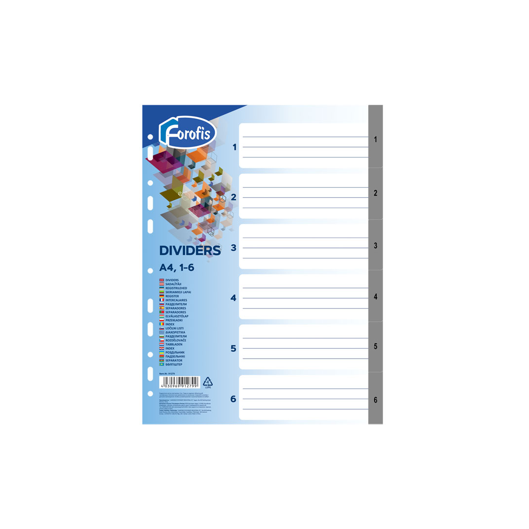 Разделители листов А4 1-5 серые пластиковые FO