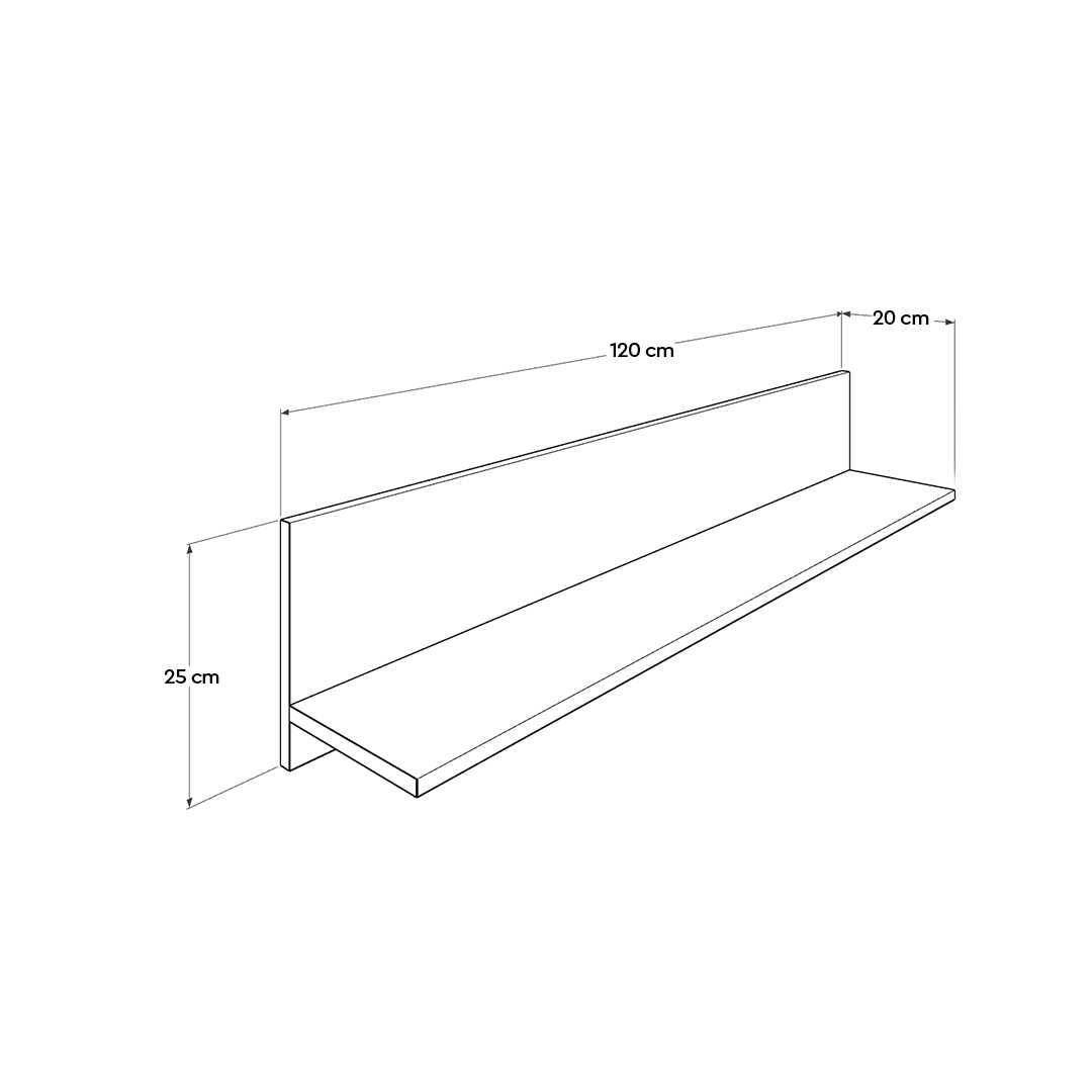 See seinariiul on 120 cm lai, 25 cm kõrge ja 20 cm sügav, mis pakub piisavalt ruumi kõigile teie asjadele. Kui teil on vaja kohta, kus hoida oma raamatuid, eksponeerida oma kollektsioonitarbeid või organiseerida oma esmatarbeid, siis see riiul on teie jaoks olemas. Tänu mitmekülgsele mõõtmetele sobib see igasse ruumi, nii suurde kui ka väikesesse.
