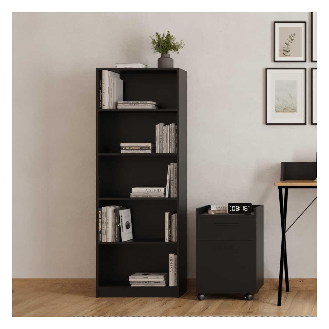 Valmistatud 100% melamiiniga kaetud puitlaastplaadist, ei ole see raamaturiiul mitte ainult stiilne, vaid ka vastupidav. Arvukad riiulid pakuvad piisavalt ruumi kõigi teie asjade hoidmiseks, samas kui võimalus kinnitada see seina külge tagab stabiilsuse ja ohutuse.
