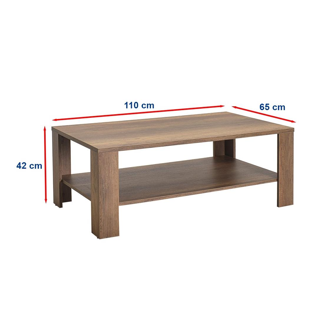 See 110 cm laiune, 42 cm kõrge ja 65 cm sügavune kohvilaud on ideaalne suurus igasse elutuppa. Olenemata sellest, kas teil on väike või suur ruum, see kohvilaud sobib täpselt sinna ja saab teie ruumi keskpunktiks.