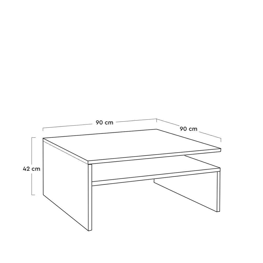 90 cm laiuse, 42 cm kõrguse ja 90 cm sügavusega kohvilaud pakub palju pinda hommikukohvi, ajakirjade või dekoratiivsete esemete jaoks. Täiendav hoiuruum all on ideaalne puldi, raamatute või muude oluliste esemete hoiustamiseks, hoides teie elutoa segadusteta.