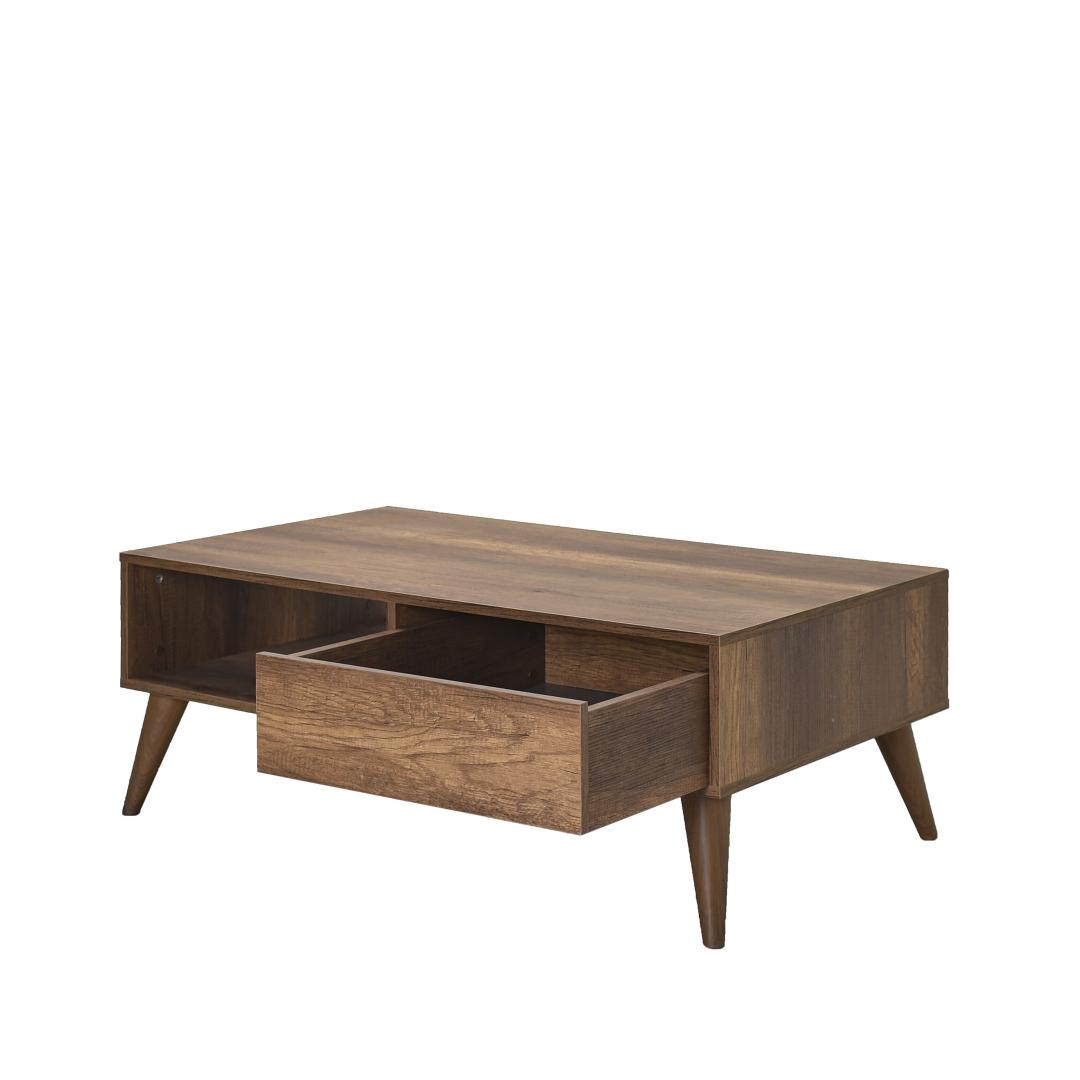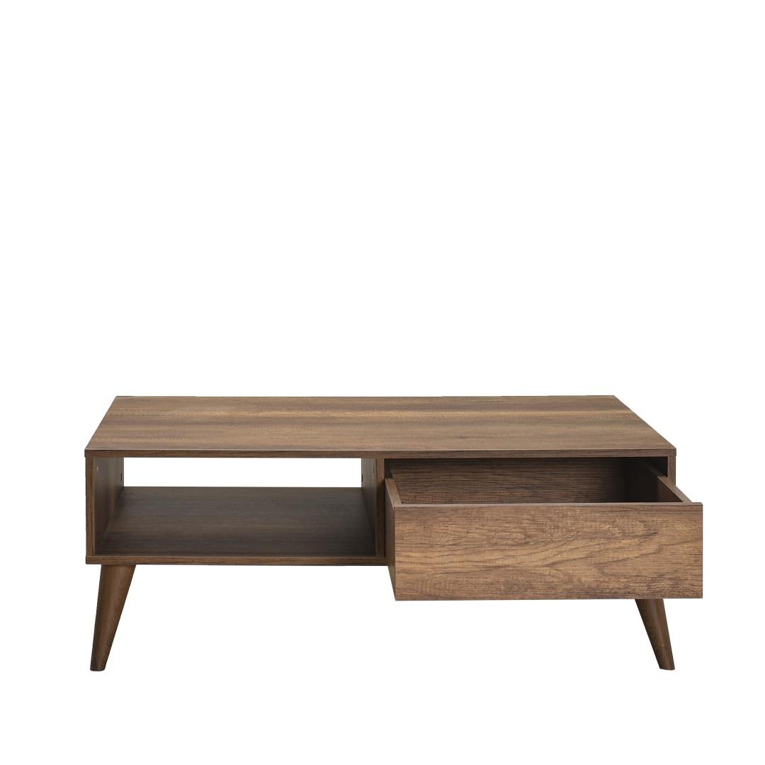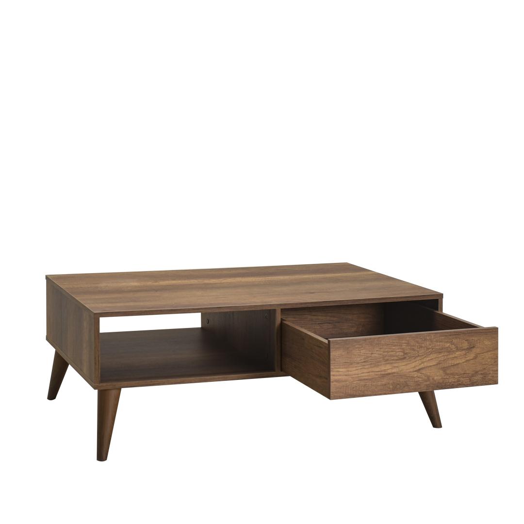 See 110 cm laiune, 42 cm kõrge ja 65 cm sügavune kohvilaud pakub piisavalt pinda oma lemmikraamatute, ajakirjade või dekoratiivsete esemete esitlemiseks. Selle ruumikas disain pakub ka mugavat hoiukohta puldi, rannalaua ja muude oluliste asjade jaoks, hoides teie eluruumi organiseerituna ja segadustevabana.